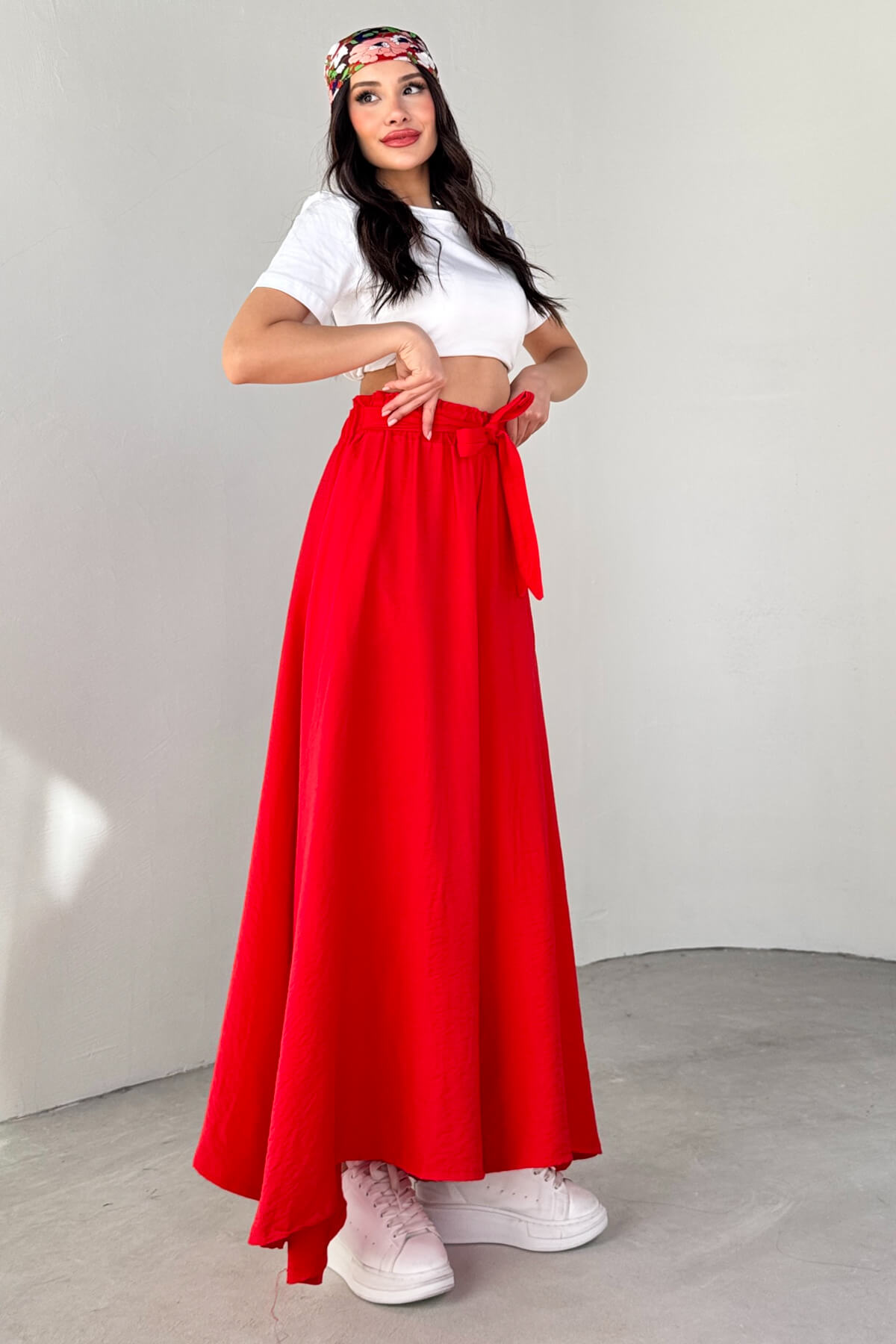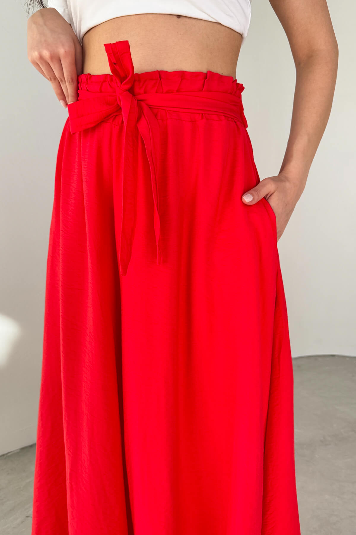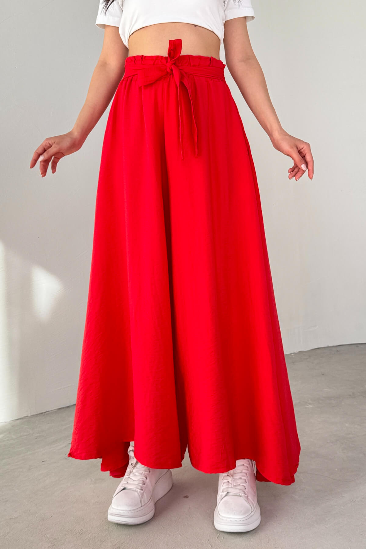 PNT-07410 Nar Çiçeği Dokuma Kuşaklı Şalvar Etek Pantolon