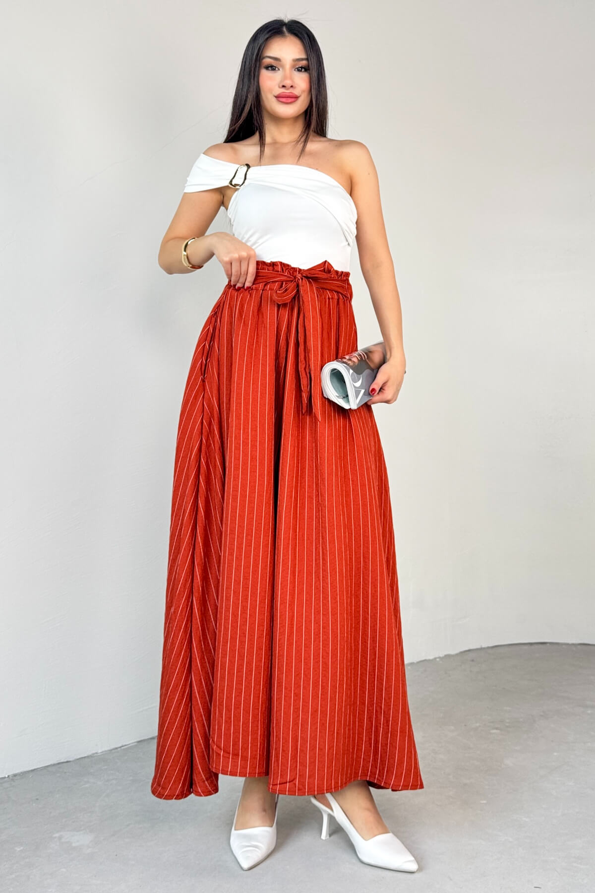 PNT-07411 Tarçın Çizgili Dokuma Şalvar Etek Pantolon