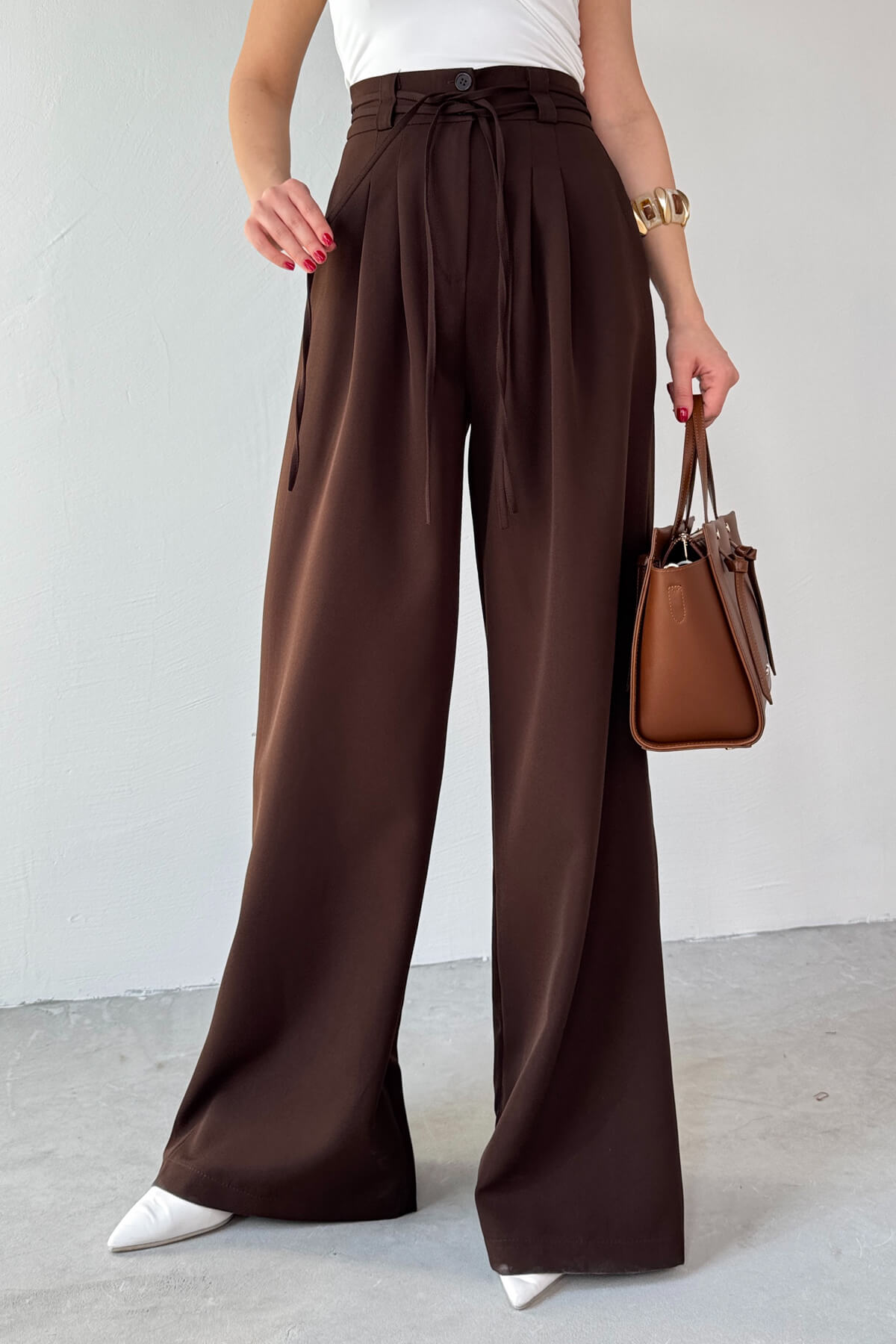 Pantolon arka bel kısmı lastiklidir ve ön düğmelidir.