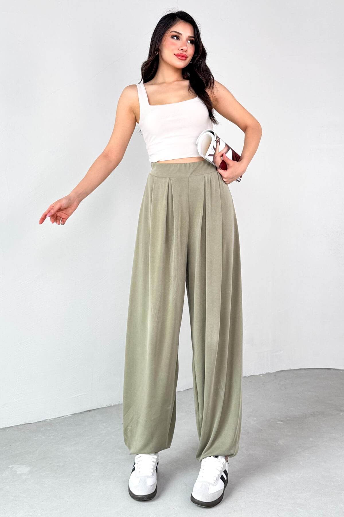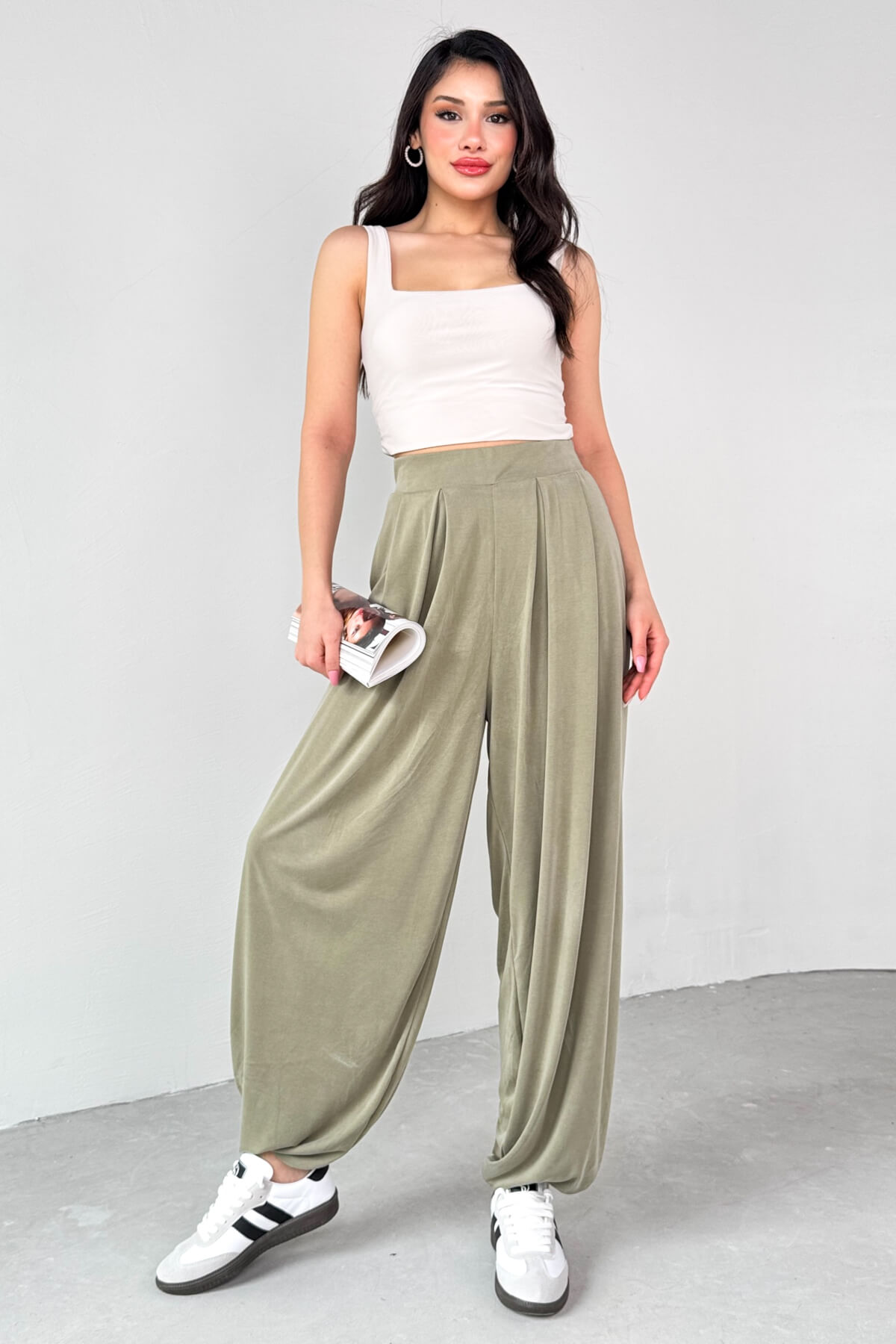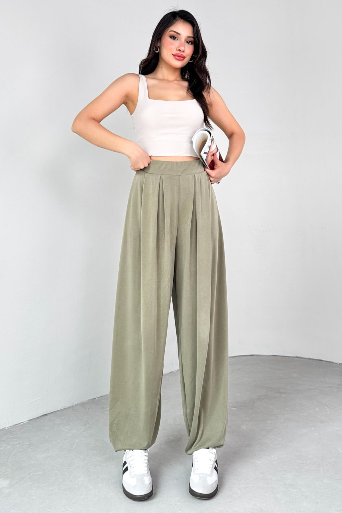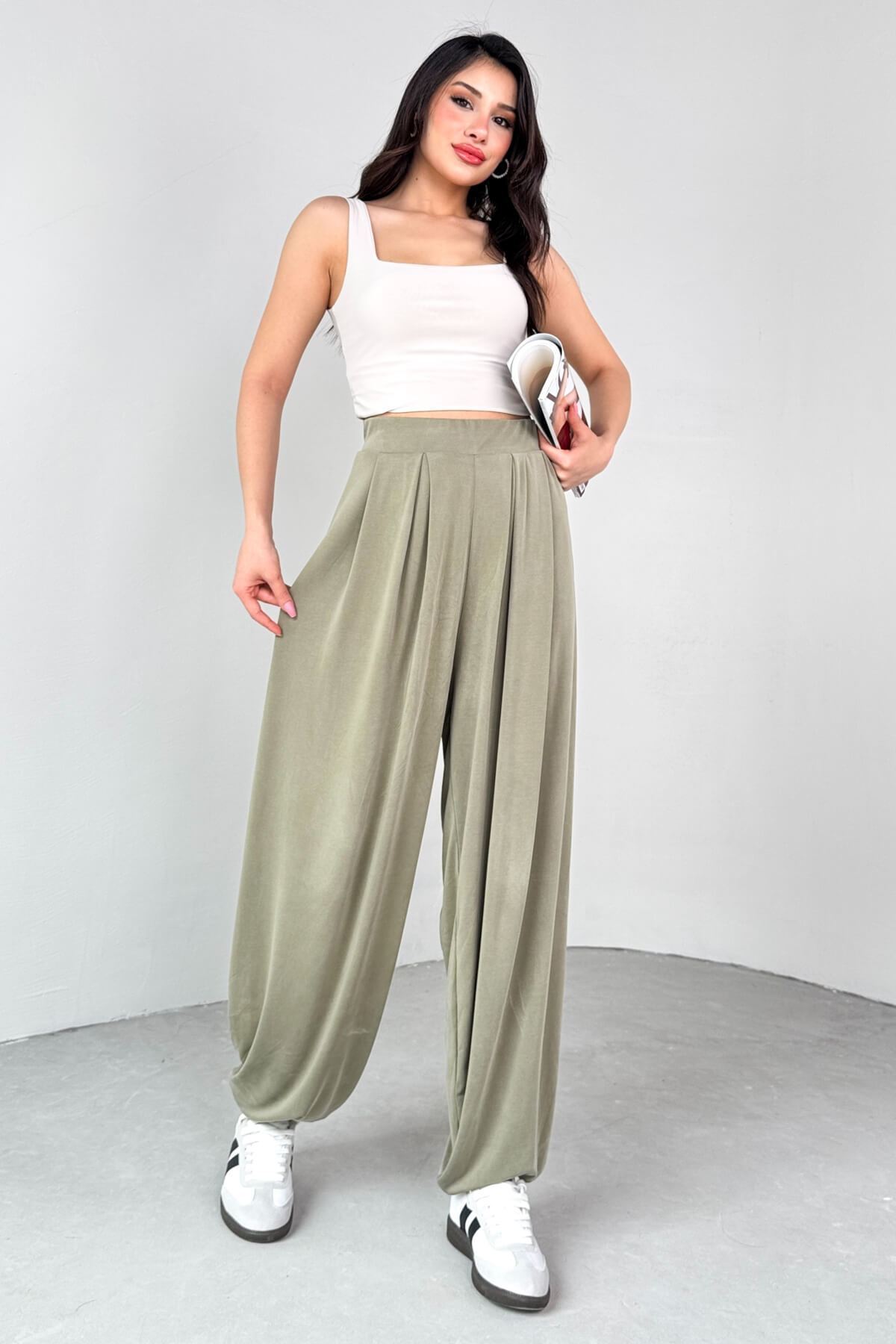 Pantolon bel lastiklidir. Şalvar model salaş kesimdir.