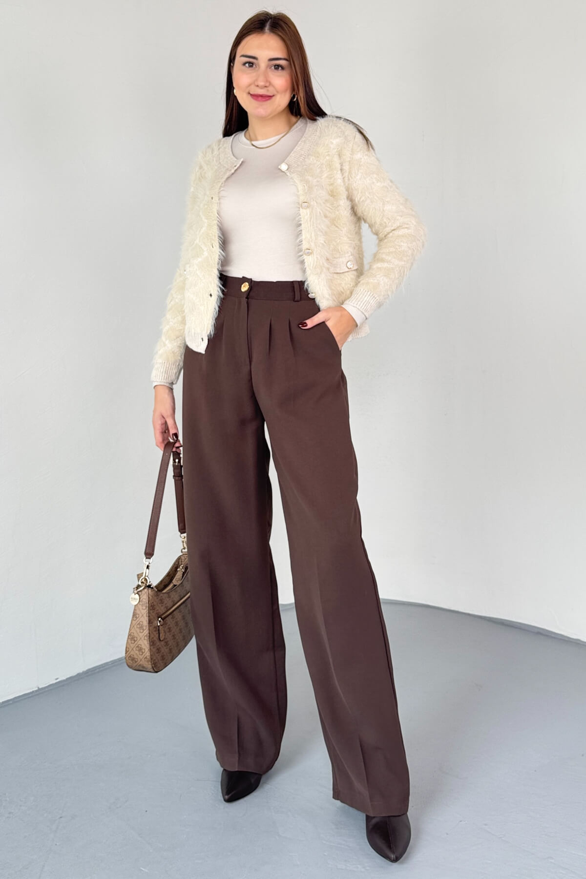 Geniş kesim palazzo formu ile rahat ve havalı stil