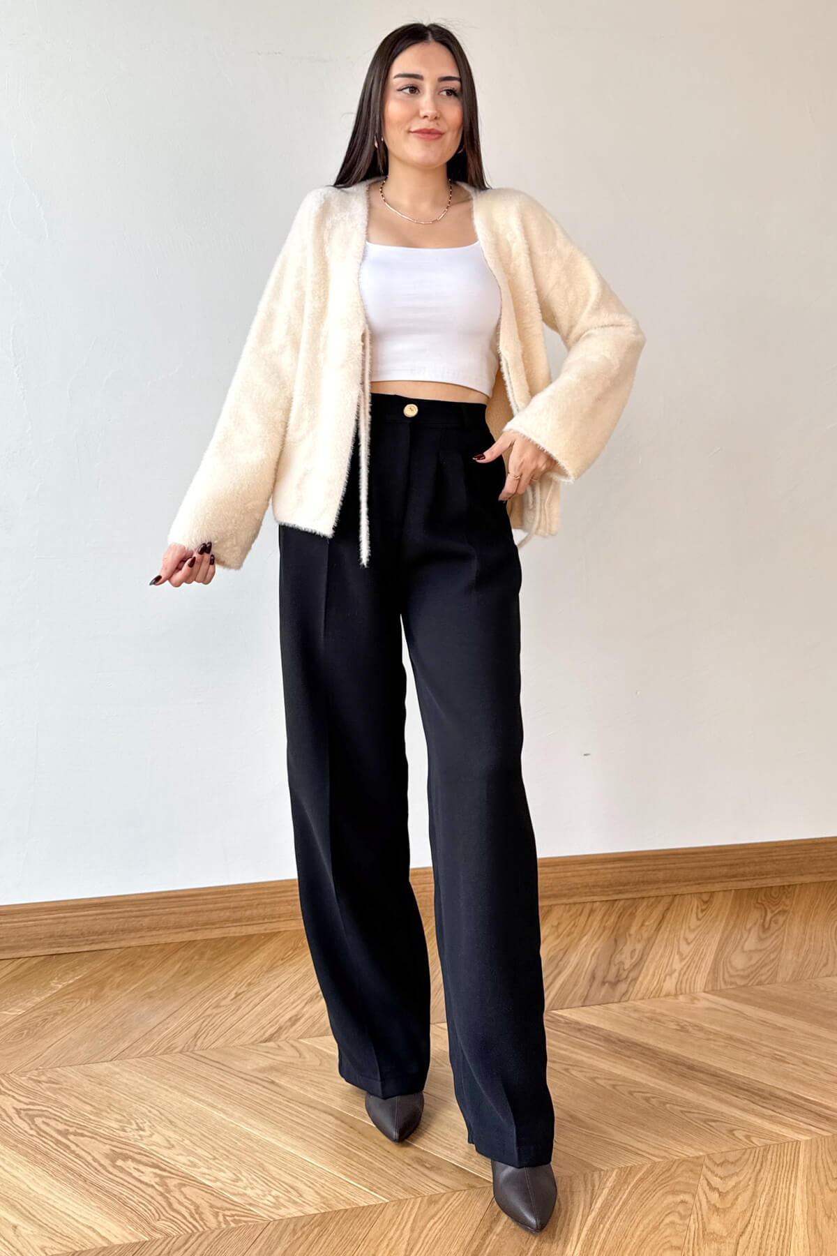 Geniş kesim palazzo formu ile rahat ve havalı stil