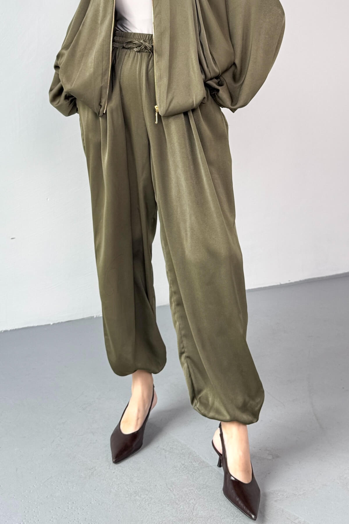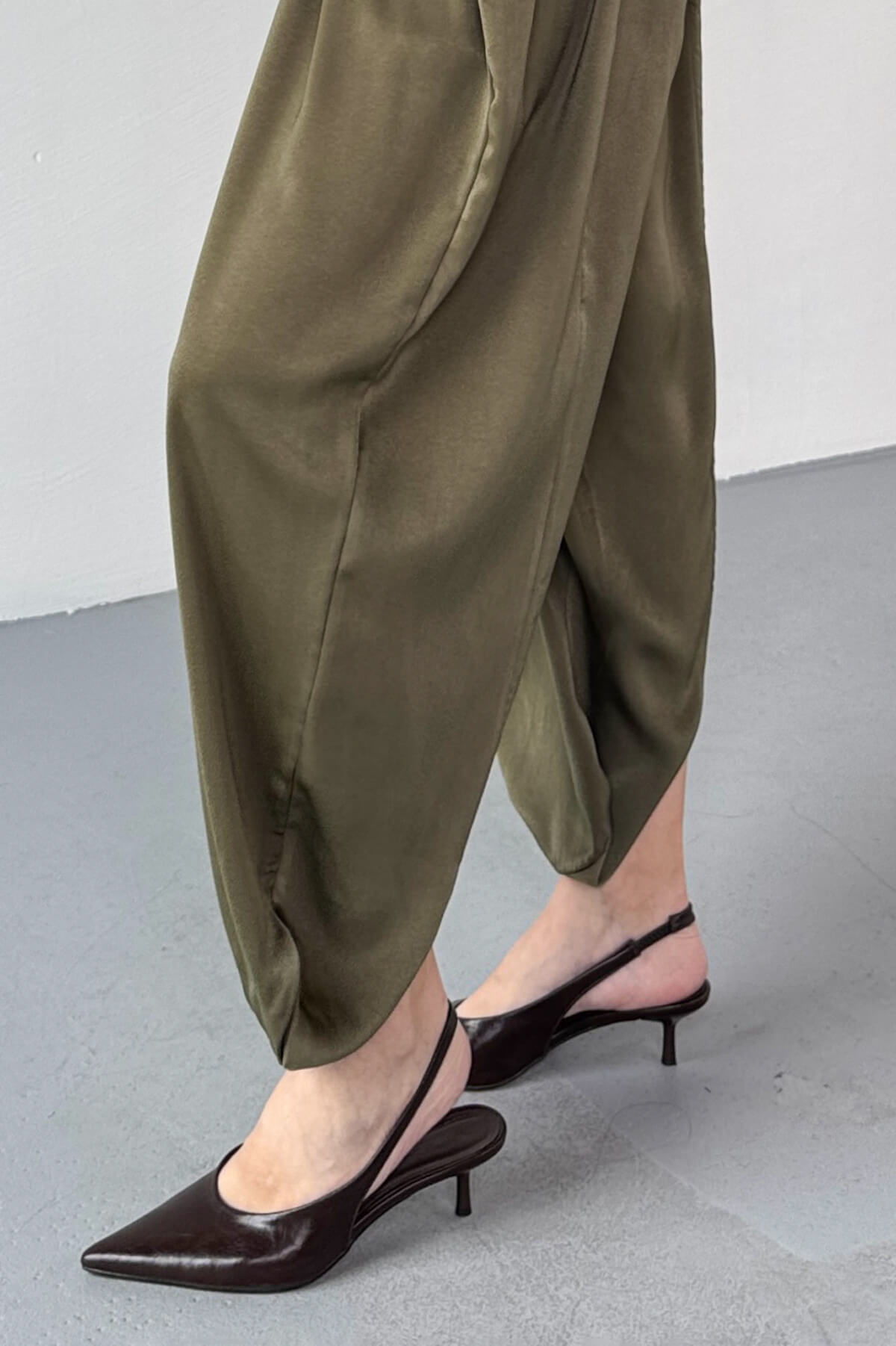 Saten kumaş yapısı ile zarif ve akıcı bir duruş
