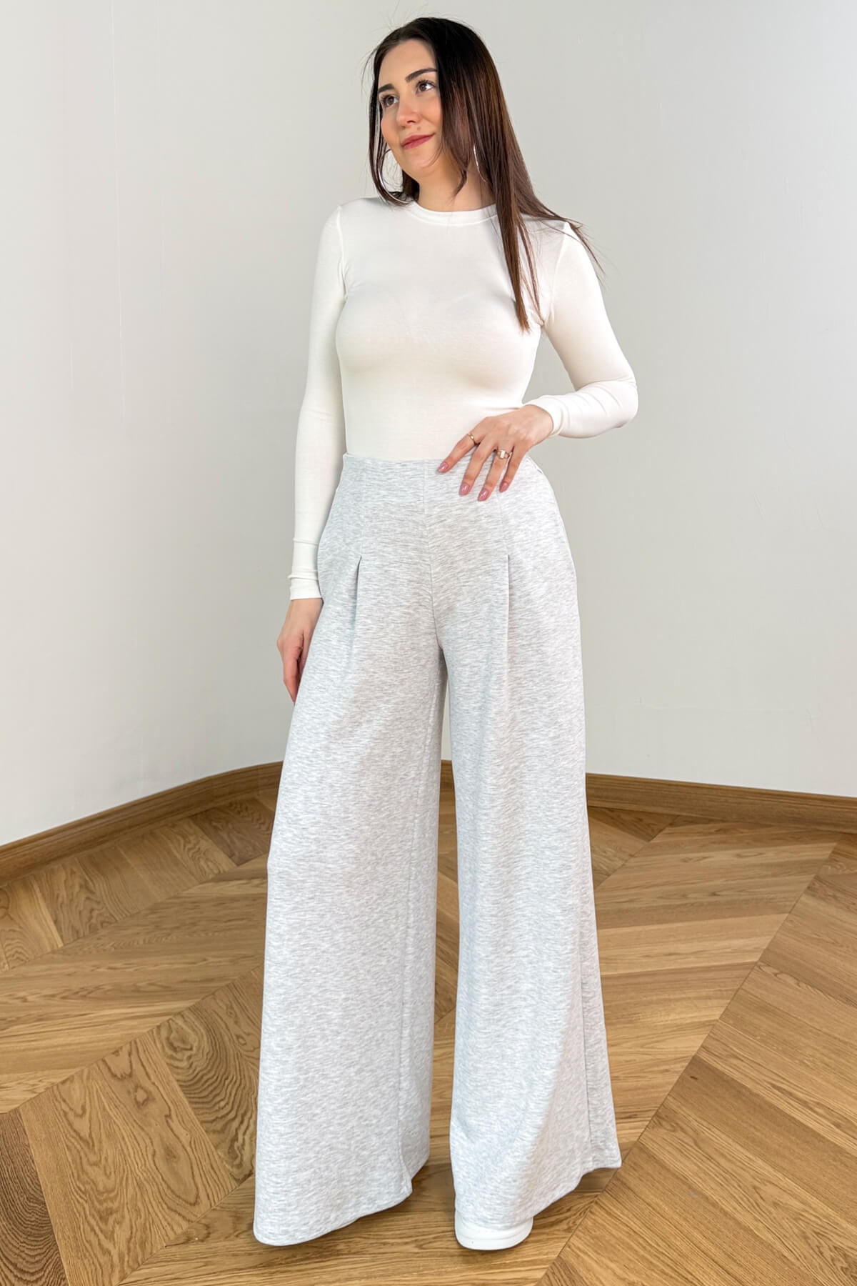 Pamuk ve modal karışımlı, full likralı kumaşı sayesinde üzerinizde yokmuş gibi hafif ve esnek bir his bırakır. 107 cm boy uzunluğu ve bacak boyunu uzatan yüksek bel kesimi, ön kısımdaki zarif orta pilise detaylarıyla birleşerek modern bir silüet sunar. Silüeti bozmayan gizli cepleriyle hem fonksiyonel hem de estetik olan bu parça, gardırobunuzun en kaliteli demirbaşı olmaya aday.