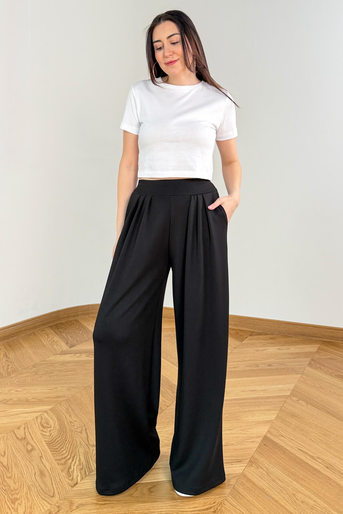Modal kumaşın dökümlü ve ipeksi yapısı, klasik şıklıkla buluşuyor. Yüksek bel olarak tasarlanan bu parça, bel hattını düz ve net bir şekilde saran kemer yapısıyla modern bir duruş sergiler. Tasarımın en dikkat çekici özelliği olan ön kısımdaki üçlü pilise detayları, pantolona hacim ve hareket kazandırırken, dikey çizgiler oluşturarak bacak boyunu daha uzun gösterir. Hem ofis kombinlerinizde ciddiyeti hem de günlük stilinizde konforu yakalayabileceğiniz, dolabınızın kilit parçalarından biri olacak.