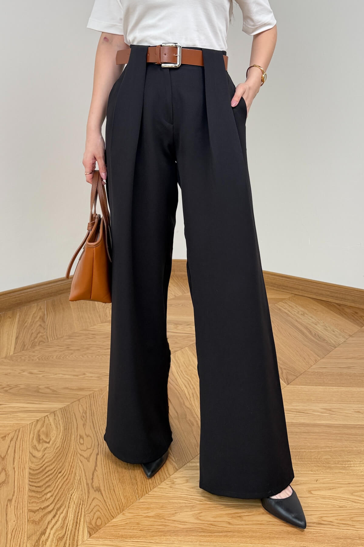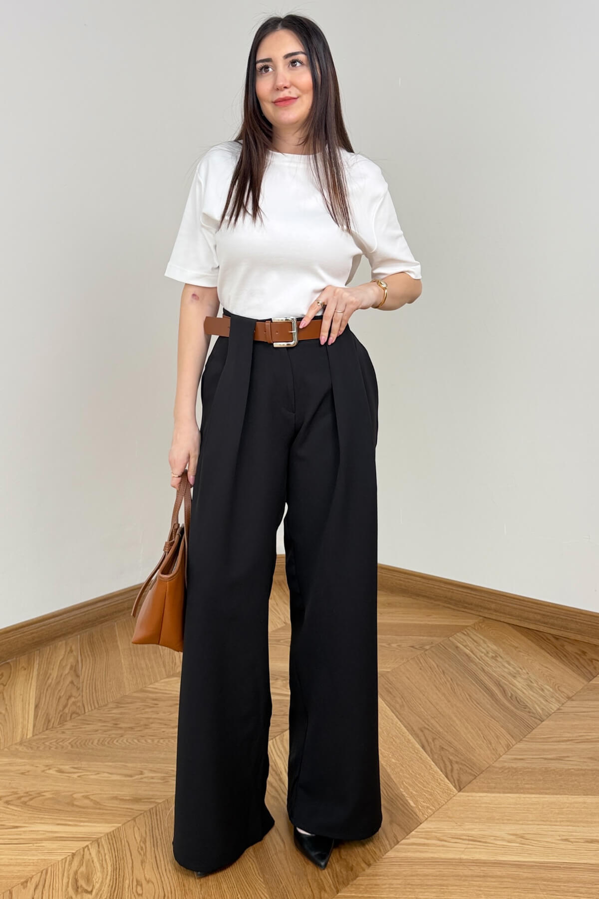 Modern kesimi ve zarif detaylarıyla stilinizi bir üst seviyeye taşıyan bu pantolon, gardırobunuzun en kilit parçalarından biri olmaya aday. 115 cm boyu ile uzun ve ince bir silüet çizen tasarım, ön kısmındaki pens detayları sayesinde kusursuz bir oturuş sergiliyor. Bel hattını şık bir şekilde vurgulayan kontrast kemer detayı, pantolona sofistike bir hava katarken dokuma kumaşın kaliteli yapısı gün boyu konfor ve şıklığı bir arada sunuyor. Hem ofis kombinlerinizde hem de özel davetlerinizde asil bir duruş sergilemek isteyen kadınlar için ideal bir seçim.