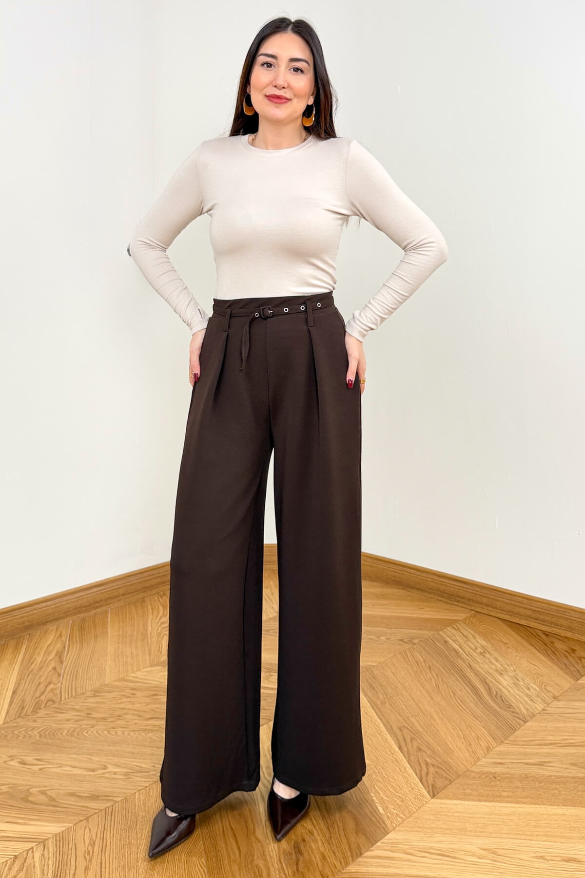 Kesim: Yüksek bel, geniş paça (Palazzo) rahat kalıp.
