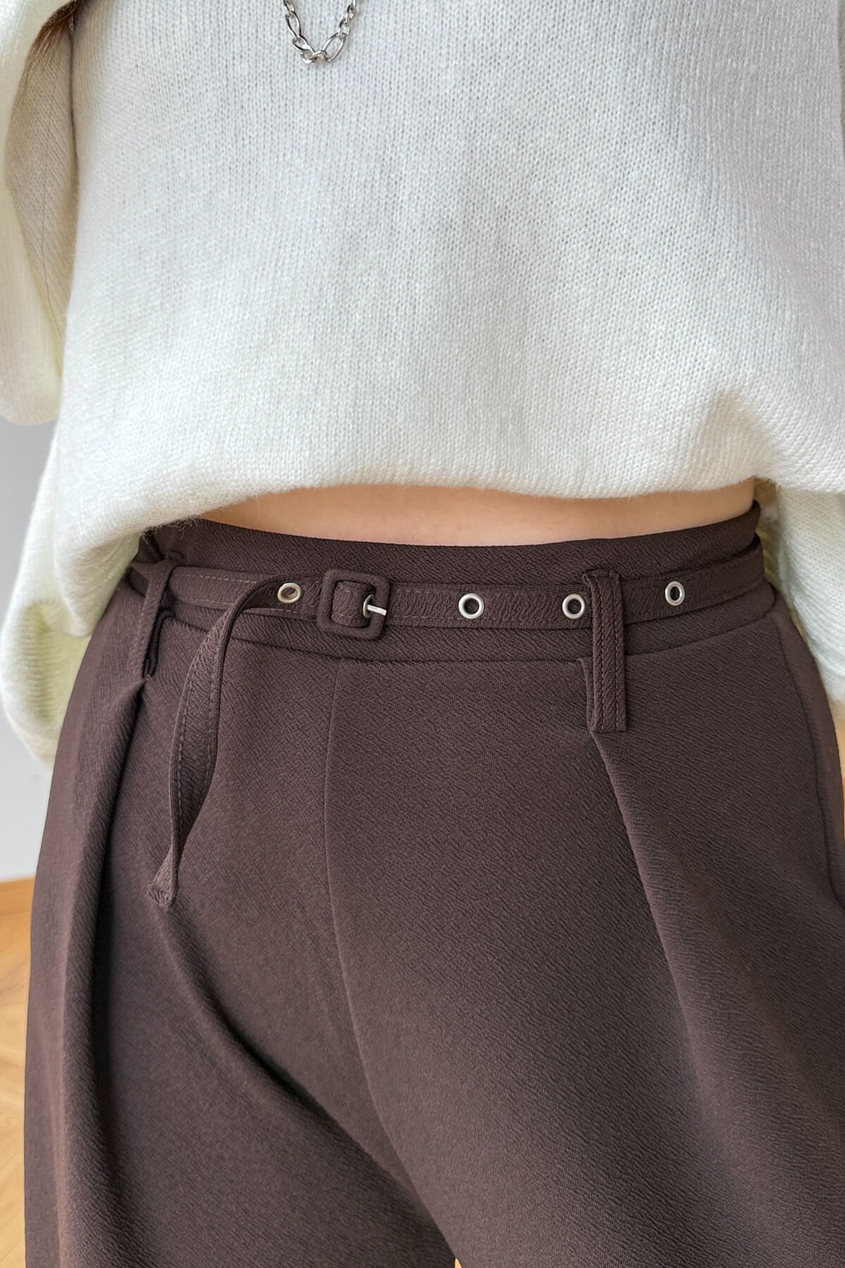 Modern ofis stilinden gece şıklığına zahmetsizce geçiş yapabilen bu pantolon, krep kumaşın asil duruşunu tasarım detaylarıyla buluşturuyor. Belindeki metal kapsül detaylı ve tokalı kendi kumaşından kemeri, ürüne maskülen ve güçlü bir hava katarken bel hattınızı zarifçe vurgular. Dökümlü yapısı sayesinde yürürken harika bir silüet oluşturur ve gün boyu kırışmadan formunu korur. 104 cm'lik uzun boyu ve yüksek bel kesimiyle bacak boyunuzu olduğundan çok daha uzun gösterir. Siyah ve acı kahve seçenekleriyle gardırobunuzun en kurtarıcı parçası olacak.
