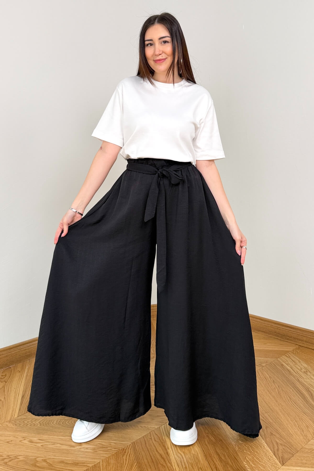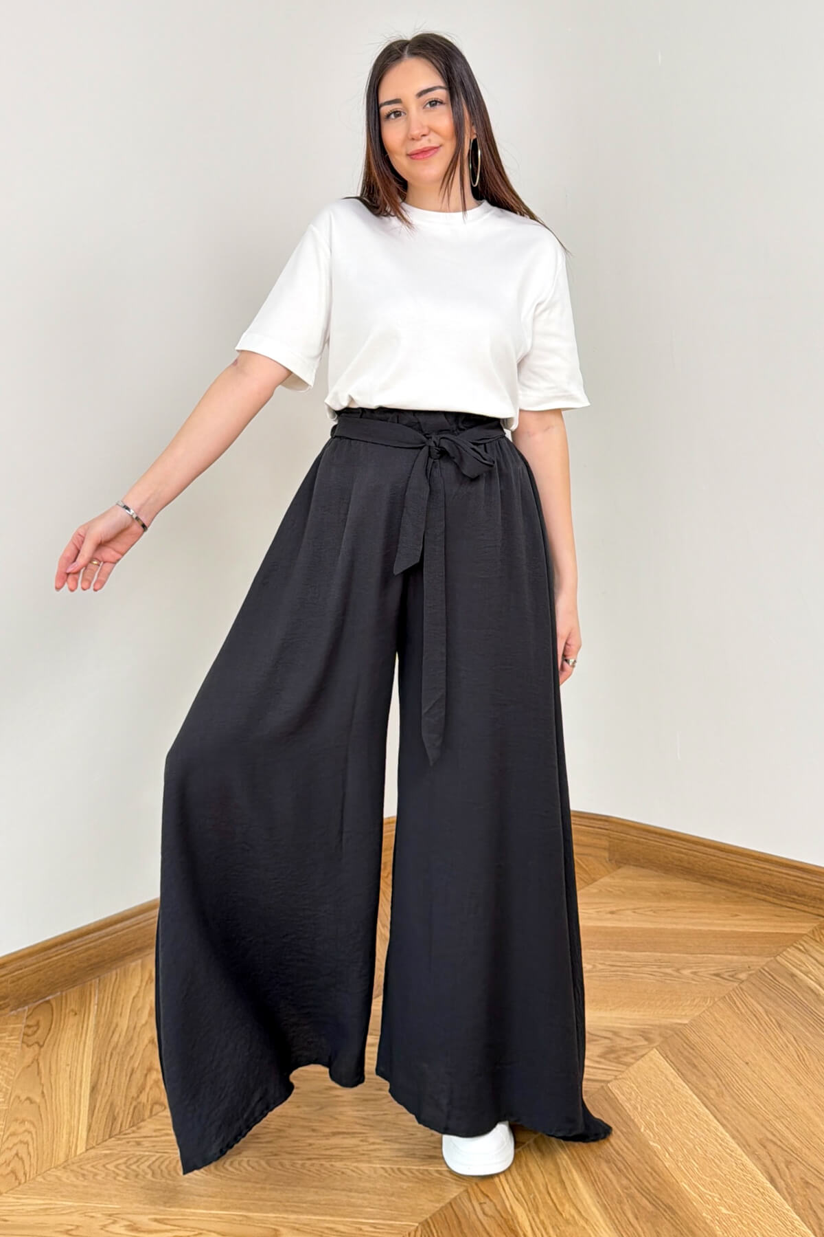 Geleneksel şalvar kesimini modern dokuma kumaşın asil duruşuyla yeniden yorumlayan bu pantolon, konfor ve zarafeti bir arada sunuyor. Bel kısmındaki feminen bağlama detayı ile silüetinizi zarifçe vurgularken, dökümlü yapısı ve fonksiyonel yan cepleriyle günlük kullanımda eşsiz bir rahatlık sağlıyor. Dokuma kumaşın tok ve kaliteli dokusu, her adımda akışkan bir görünüm sergileyerek gardırobunuzun en joker parçalarından biri olmaya aday.