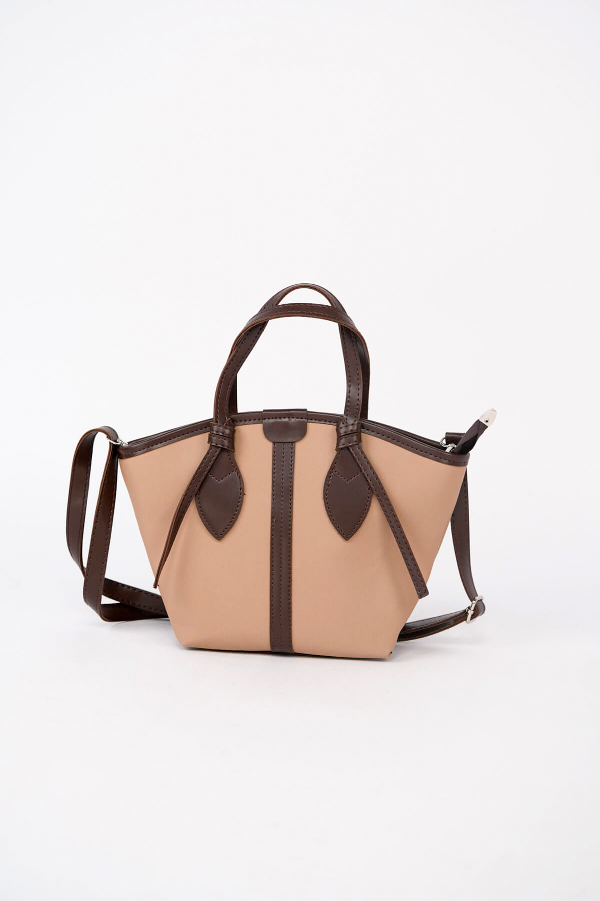 Tasarım Detayı: Çantada estetik biye işçiliği, kemerde çift metal köprü ve ayakkabıda maskülen bant detayı