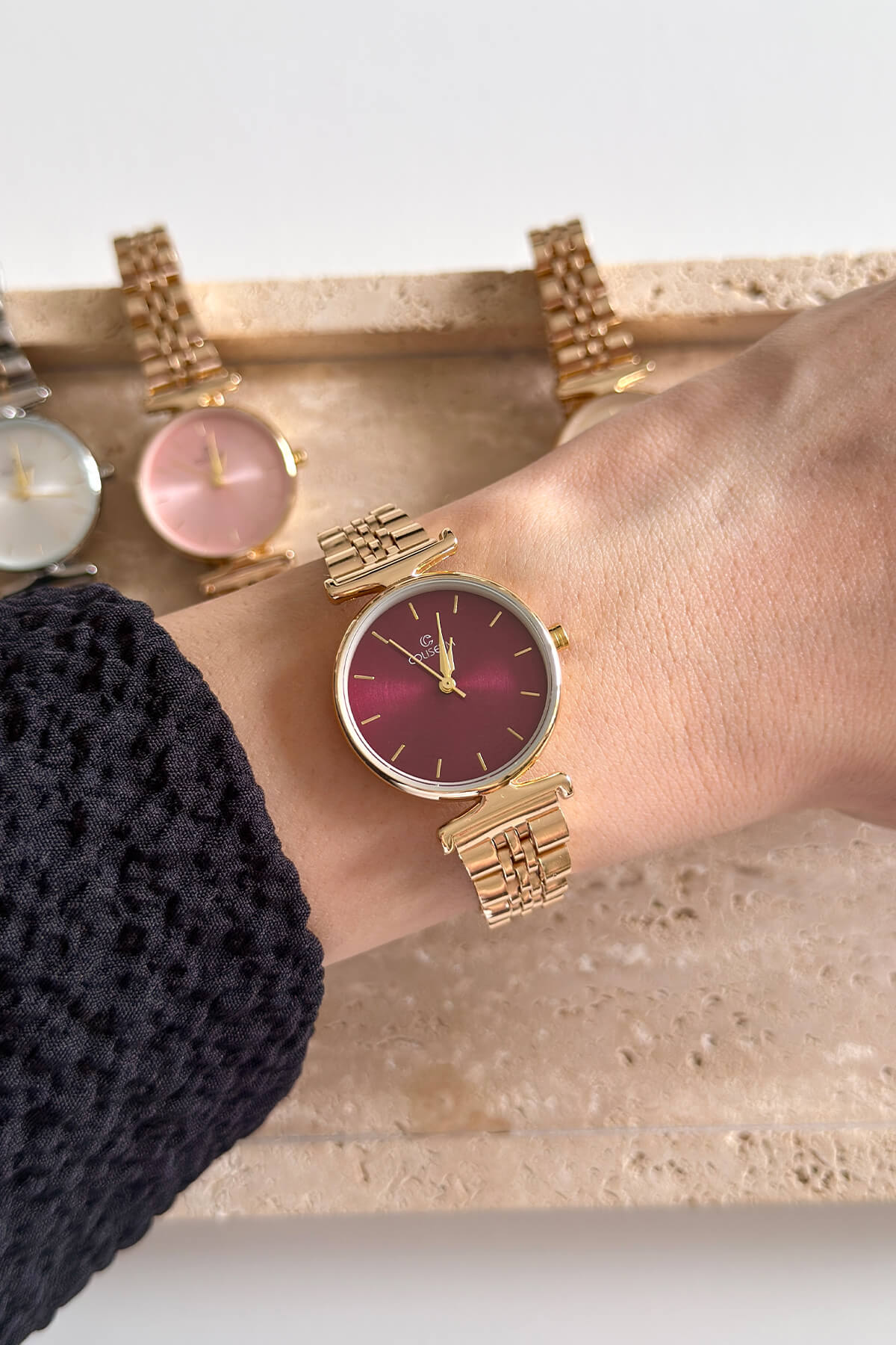 Cappmoda Rose Bordo Kadran Gold Çelik Kordon Kadın Kol Saati