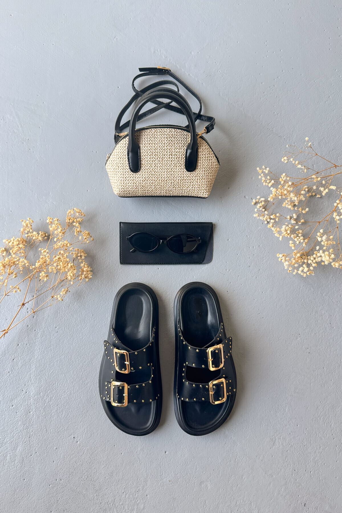SET100 Siyah Terlik - Çanta - Gözlük Yazlık 3'lü Set