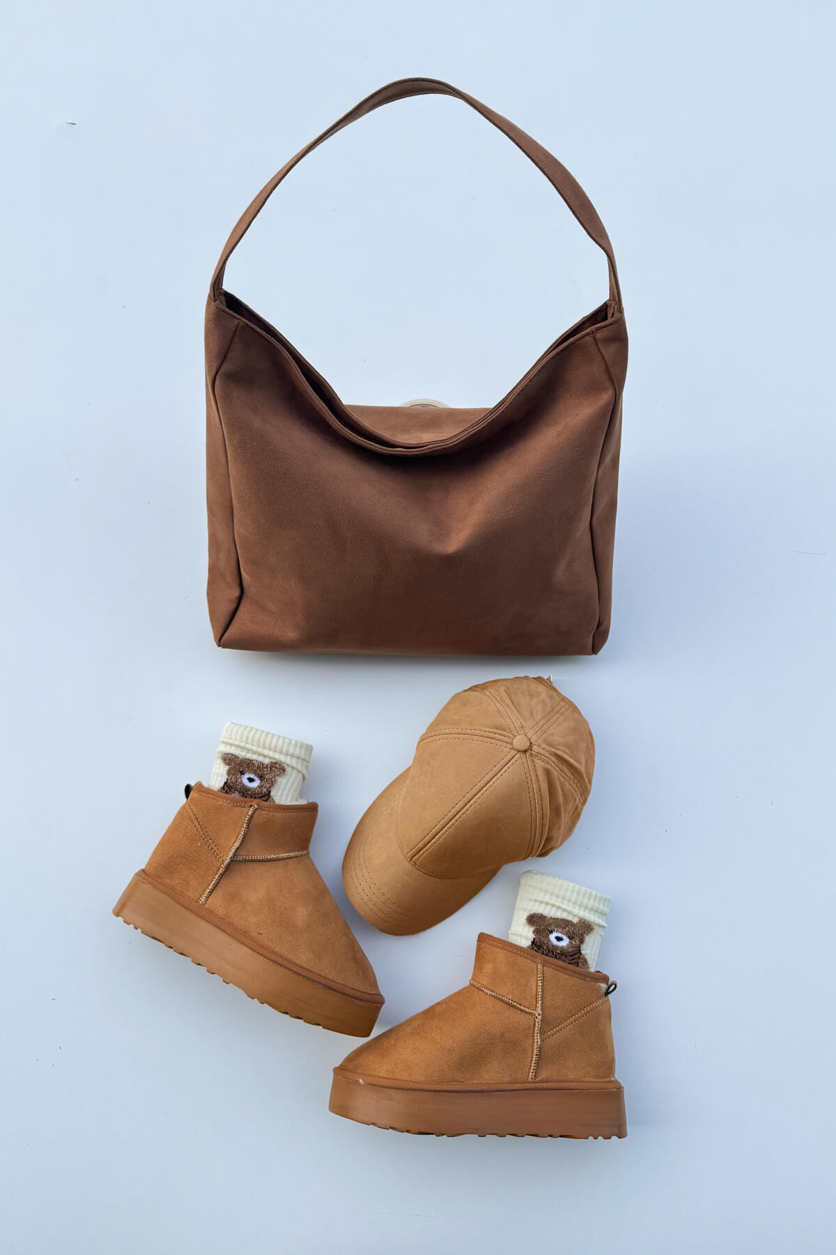Üç parçanın ton uyumu ve dokusal bütünlüğü, günlük şehir stiline sıcak ve modern bir hava katar.