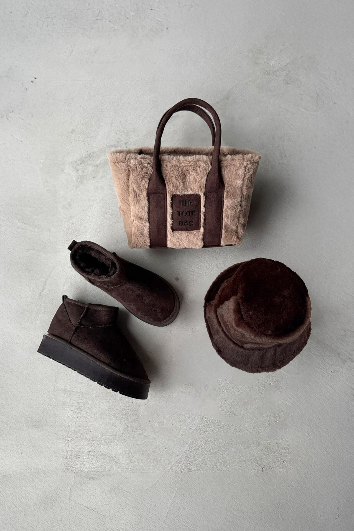 Kürklü tote çanta, yumuşacık dokusu ve iç hacmiyle soğuk günlerde sıcak bir stil tamamlayıcısıdır.