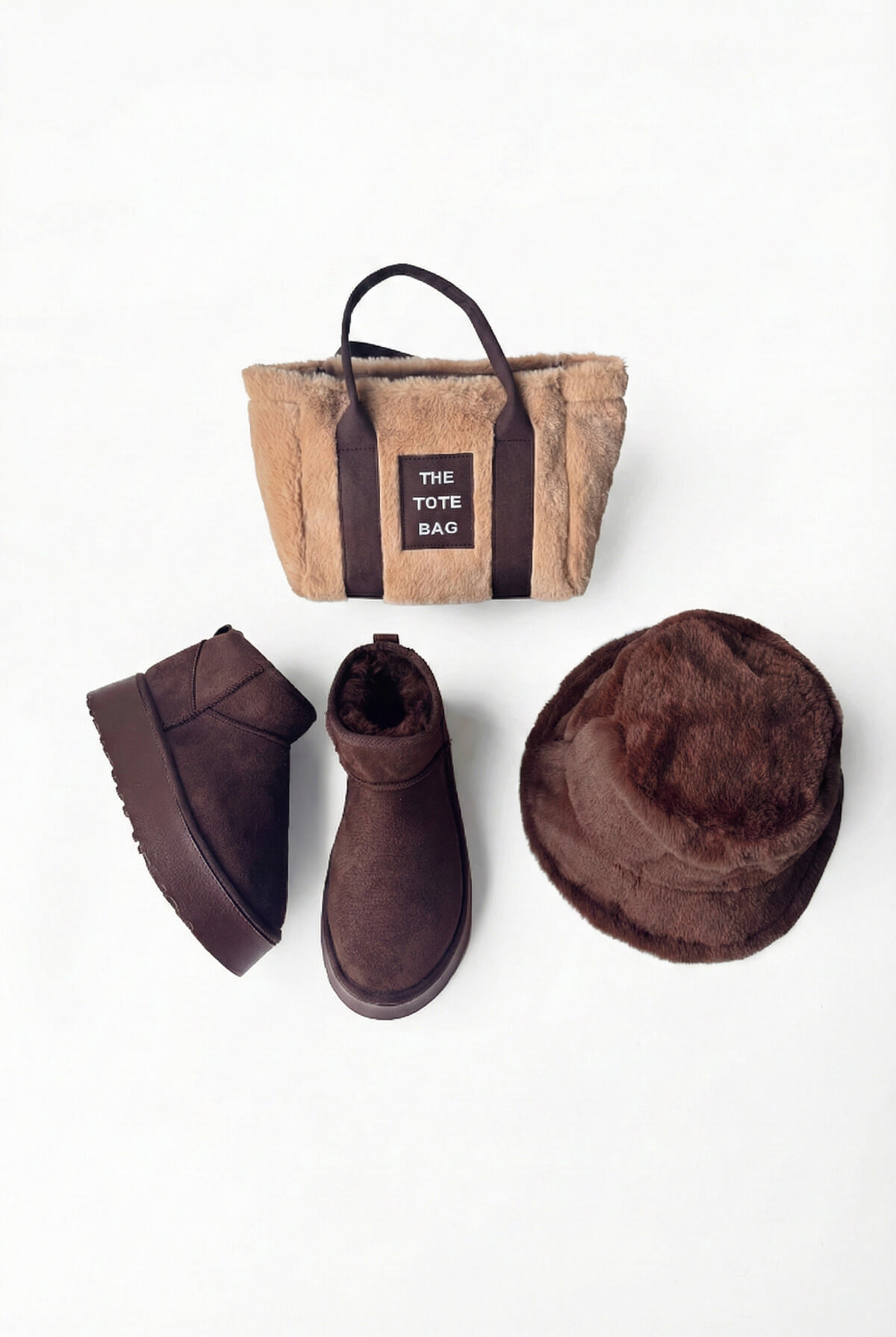 Üç parçanın dokusal bütünlüğü ve ton uyumu, kış stilini sade ama etkileyici bir hale getirir.