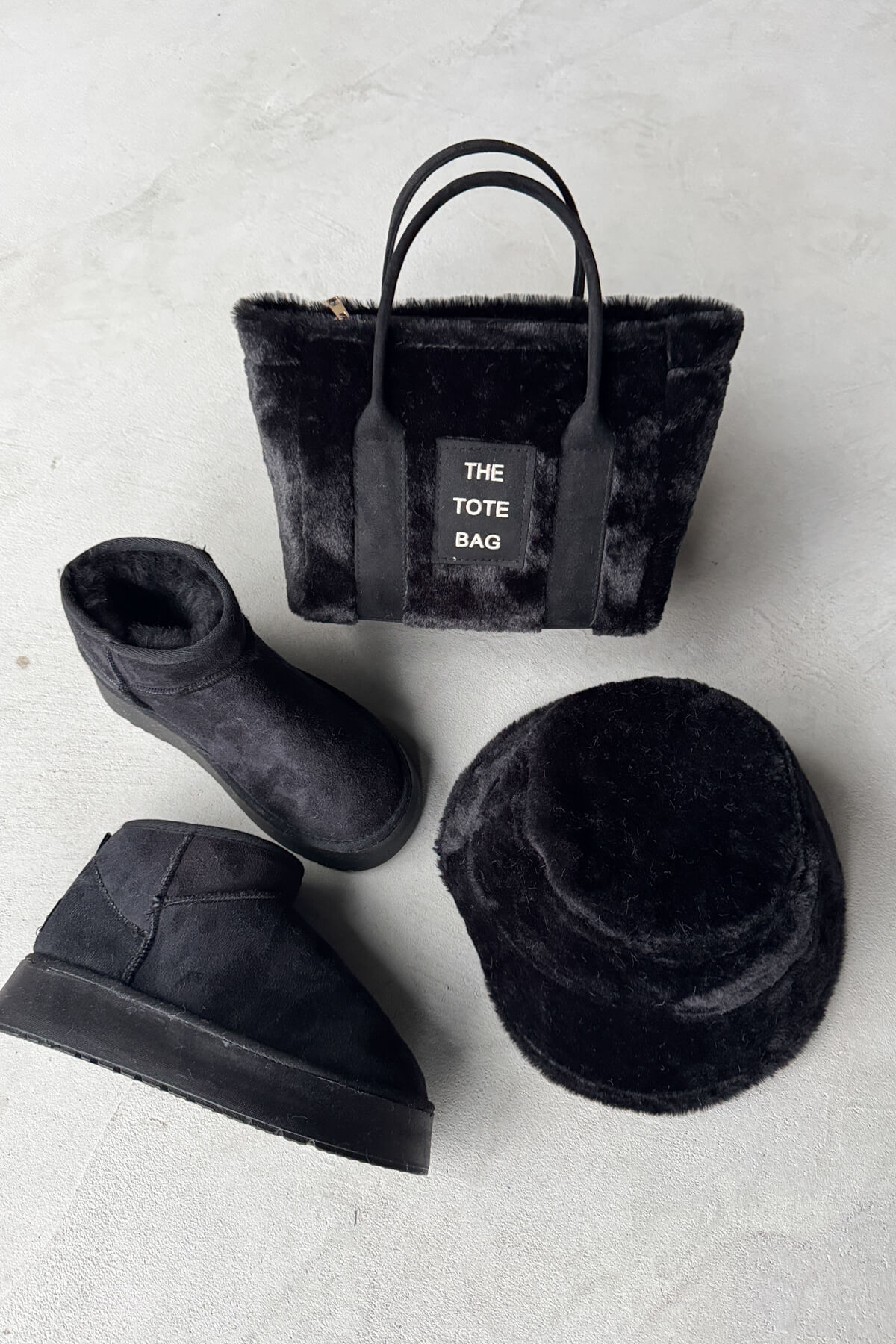 Kürklü tote çanta, yumuşacık dokusu ve iç hacmiyle soğuk günlerde sıcak bir stil tamamlayıcısıdır.