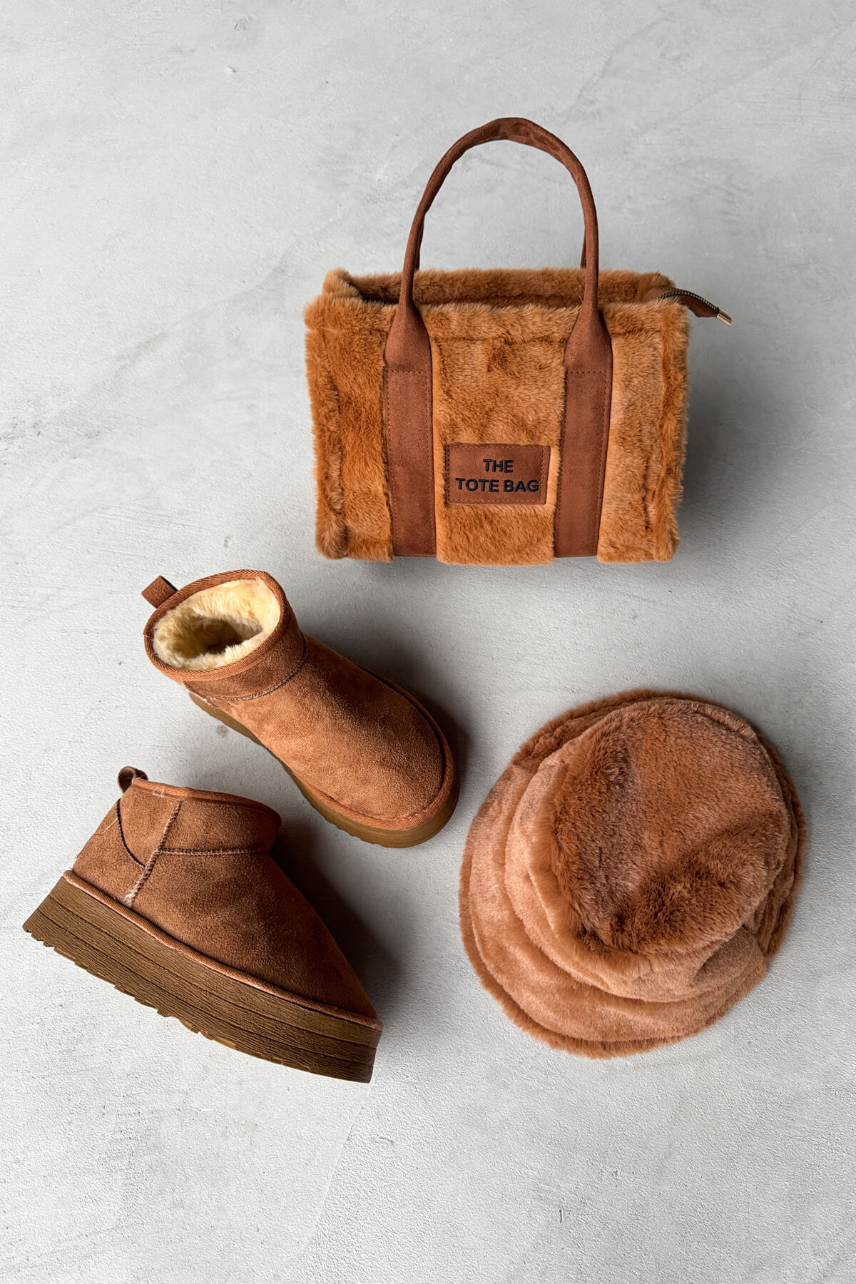 Kürklü tote çanta, yumuşacık dokusu ve iç hacmiyle soğuk günlerde sıcak bir stil tamamlayıcısıdır.