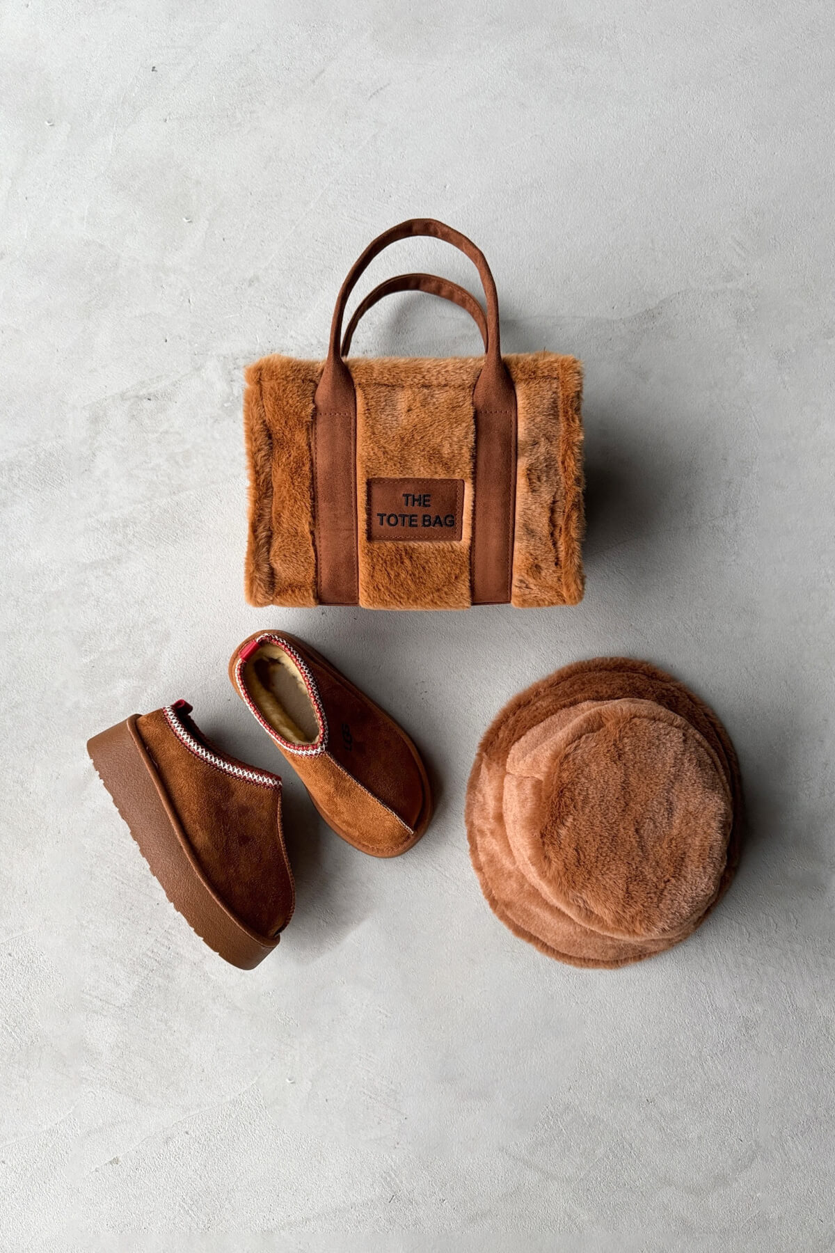 Kürklü bucket şapka, dokusuyla sıcaklık sağlarken stil sahibi bir duruş oluşturur.