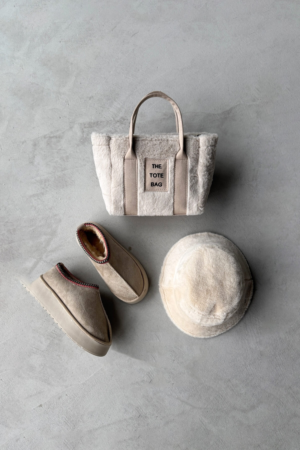 Kürklü tote çanta, yumuşacık dokusu ve pratik boyutuyla kış kombinlerine zarif bir görünüm kazandırır.