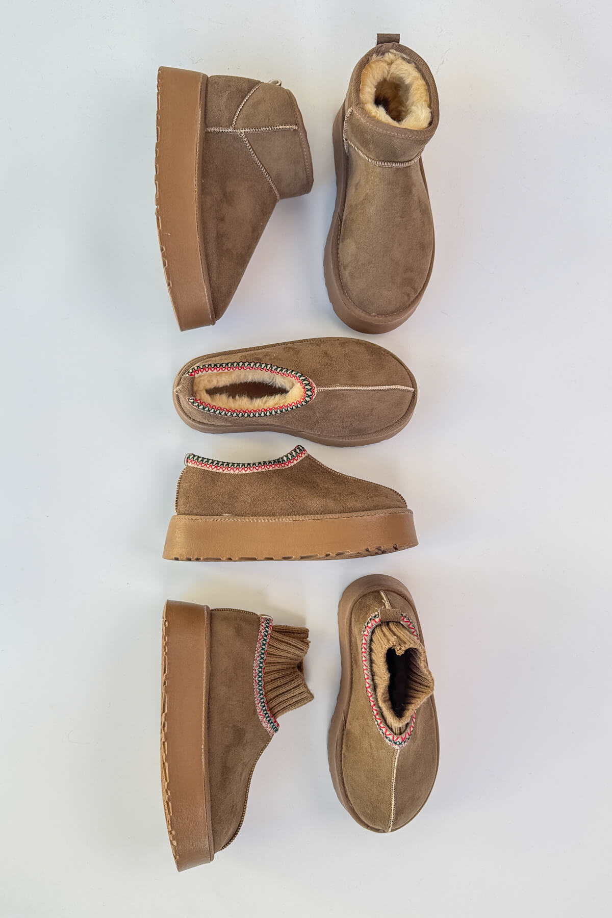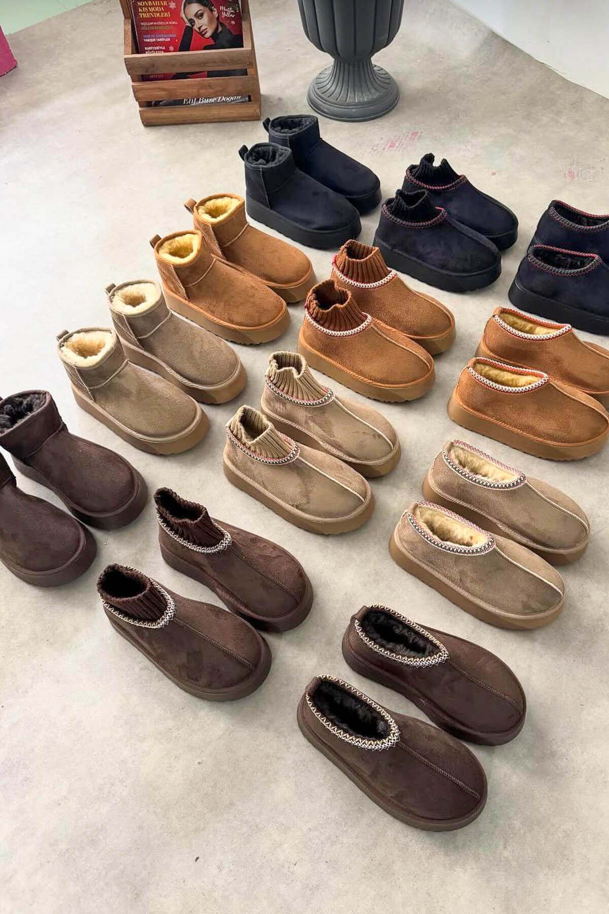 Bu özel set; bilek boy, orta boy ve örgü bilek detaylı içi kürklü bot modellerini bir araya getiriyor. Her biri kış boyunca sıcaklık, konfor ve tarz sunmak için tasarlandı.