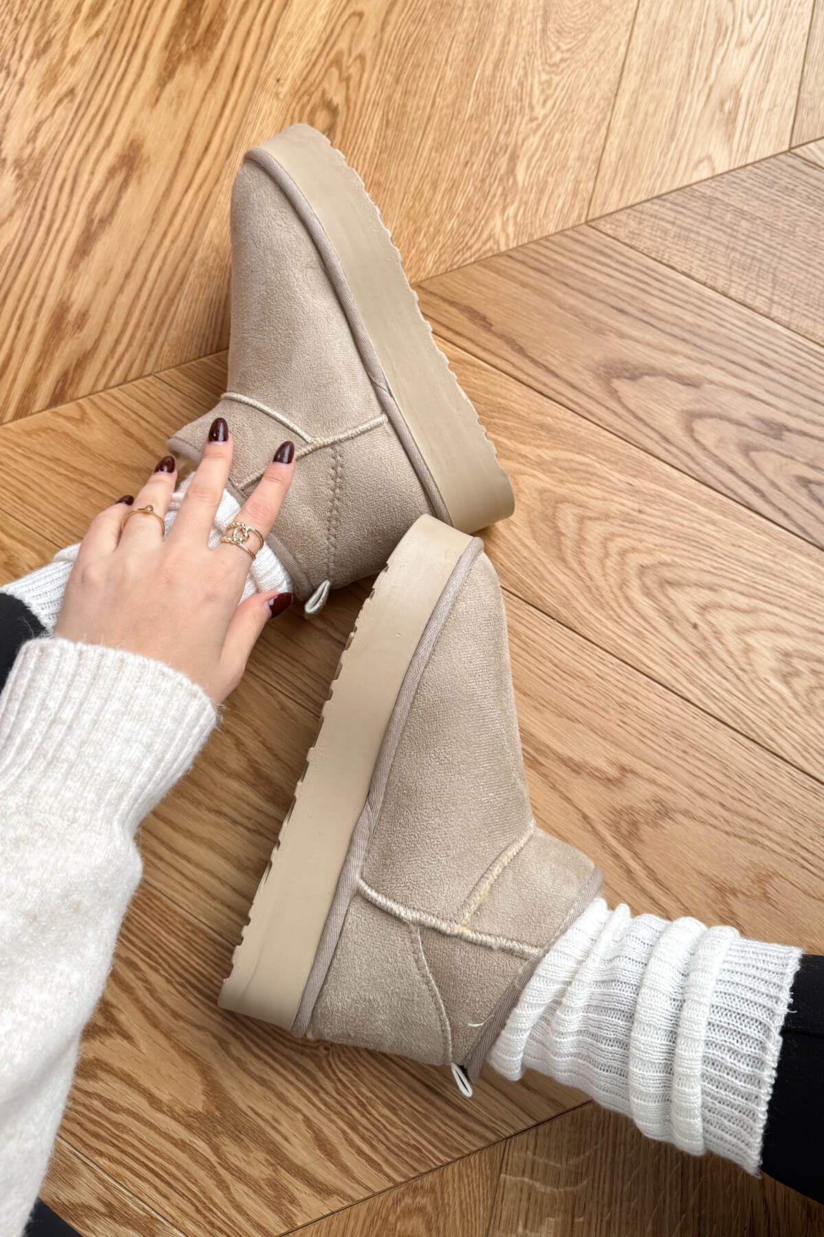 Tam kürklü iç astarlı bot, 4 cm taban yüksekliğiyle sıcak ve konforlu bir kullanım sağlar.