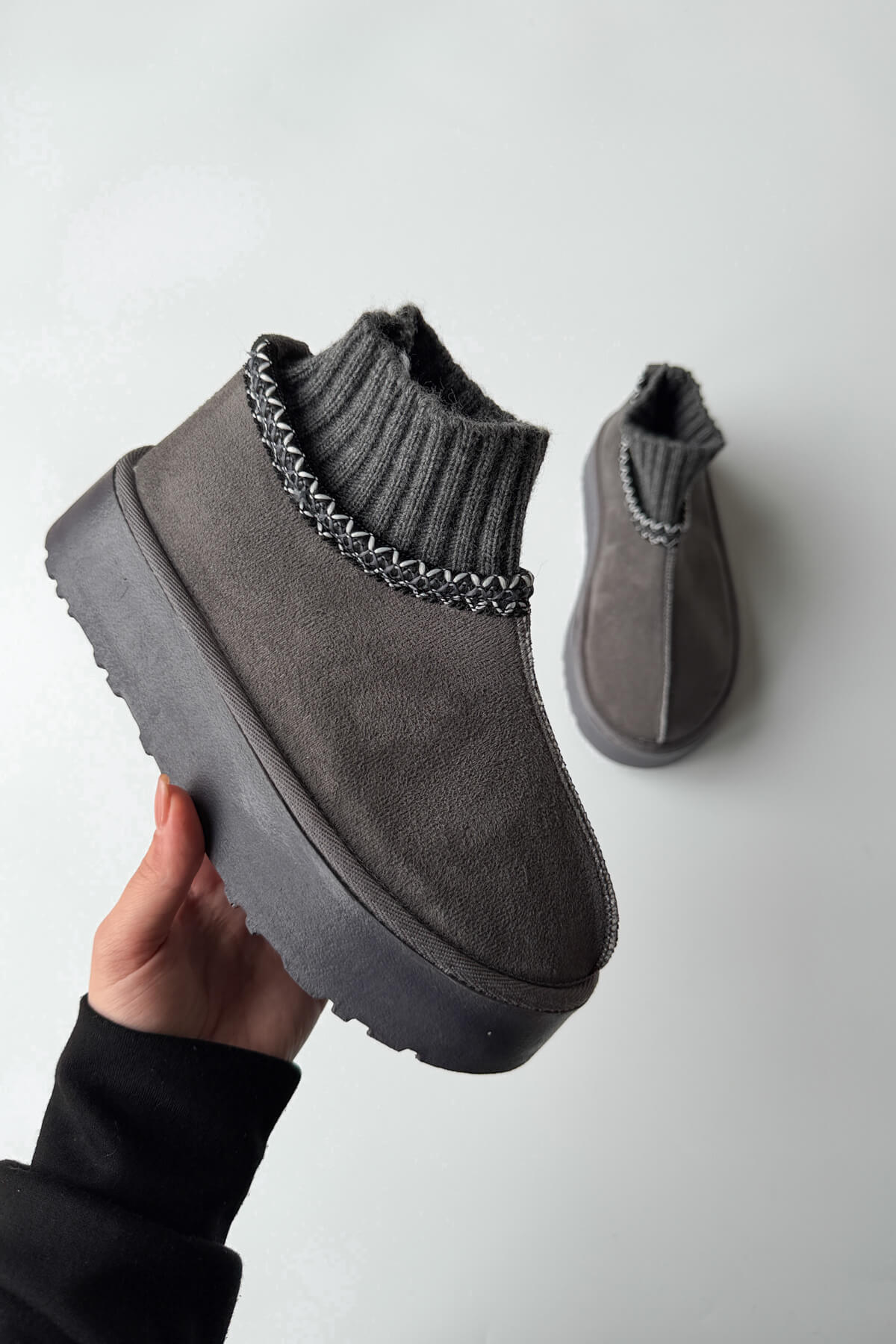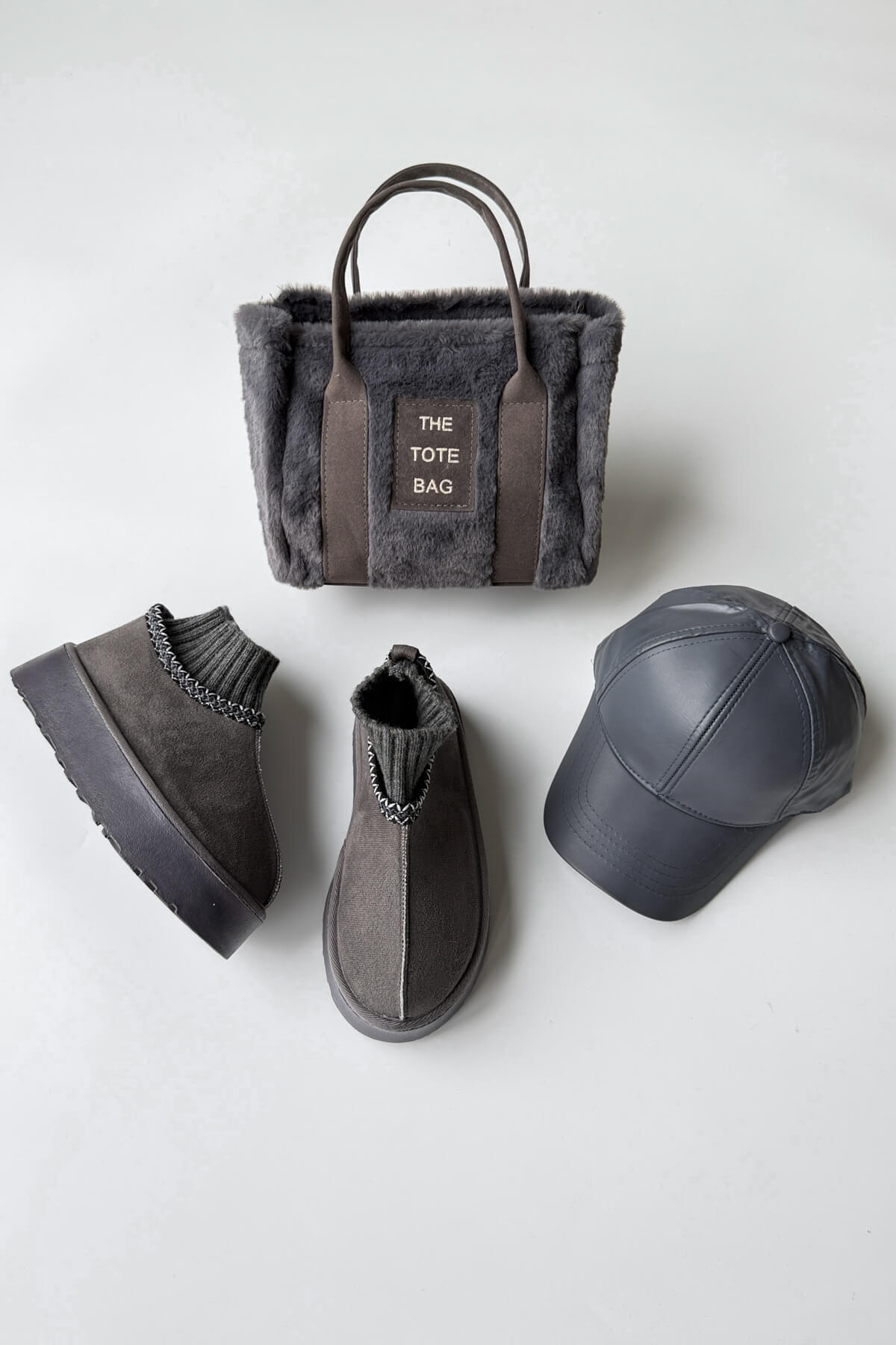 SET2038 Füme Örgü Bilek Bot - Tote Çanta - Deri Capp Üçlü Set