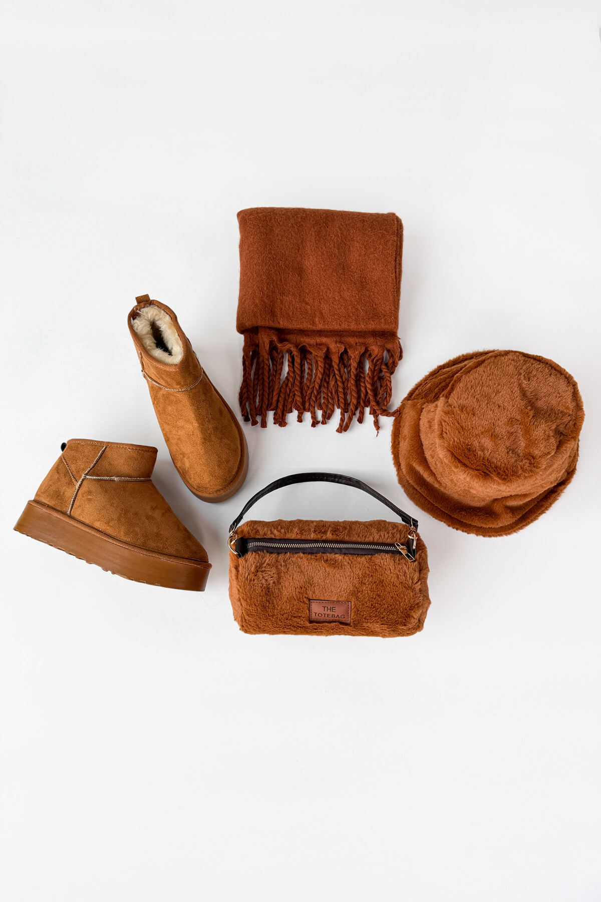 Kış stilinizi tek seferde tamamlayacak bu özel 4'lü set; renk uyumu ve yumuşak dokularıyla öne çıkıyor. İçi tamamen kürklü botlar soğuk havalarda maksimum koruma sağlarken; Kürklü çanta, şapka ve atkı kombininize modern bir hava katıyor. Hem günlük kullanım hem de şık haftasonu gezmeleri için ideal bir tercih.