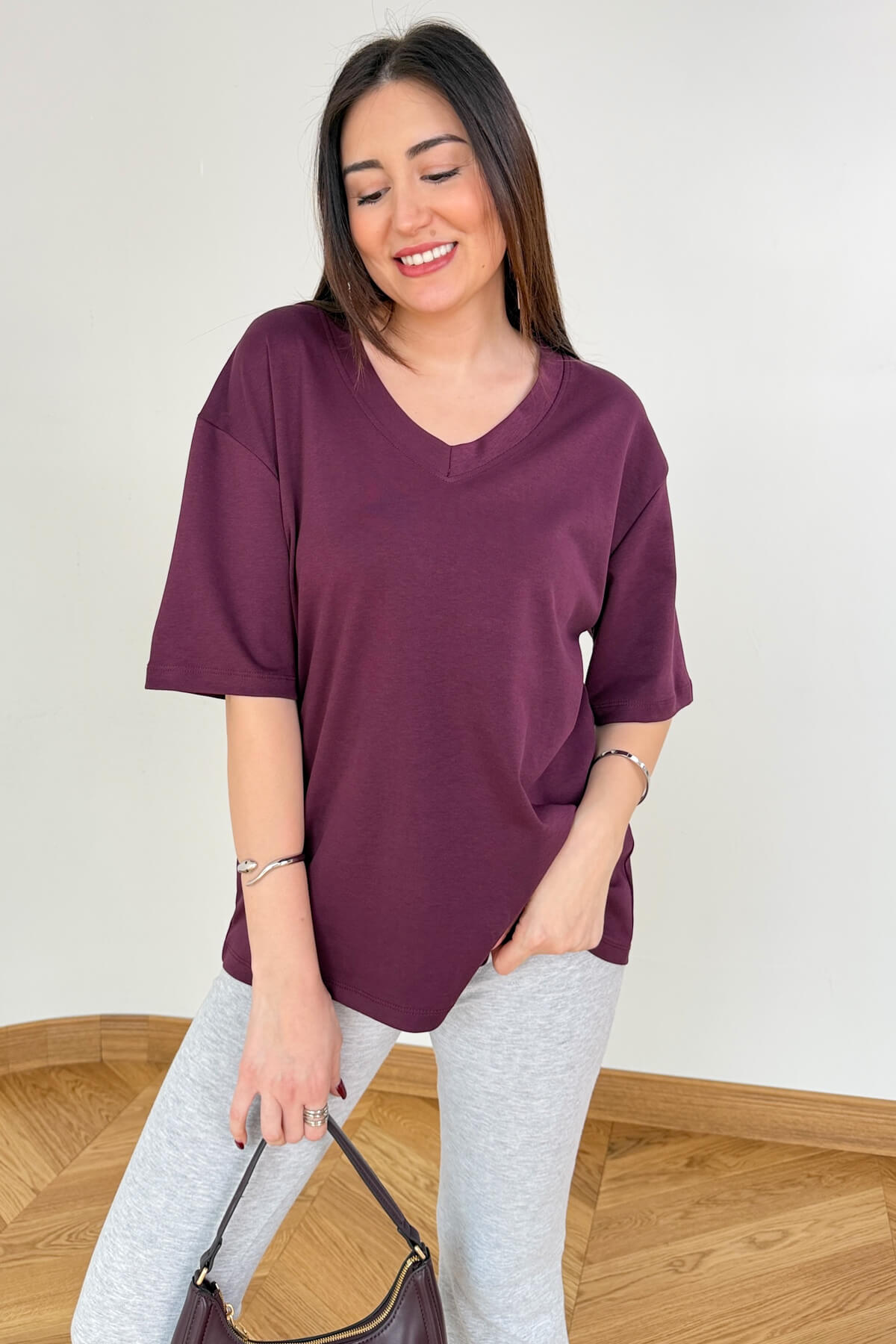 Kombin Önerisi: V yakanın açtığı dekolteyi ince zincir kolyelerle tamamlayabilir; blazer ceket ve kumaş pantolonlarla ofise, jeanlerle sokağa uyarlayabilirsiniz.