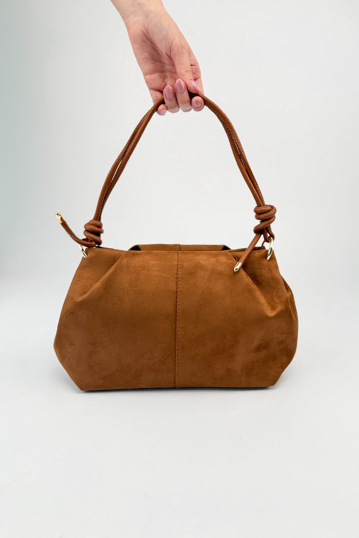 Sienna Süet Serisi, renginin sıcak enerjisini ve süet dokusunun asaletini, mimari dikiş detaylarıyla birleştirerek "sessiz lüks" stilini yeniden tanımlıyor. Gövdesindeki dikey panel işçiliğiyle derinlik kazanan slouchy çantanın, küt burunlu modern babetlerle olan kusursuz uyumu, detaylardaki gold ışıltılarla taçlanıyor. Sete zarif bir mücevher dokunuşu katan mini gold vintage saat ise zamanı bir aksesuar zarafetinde bileğinize taşıyor. El işçiliği düğümlerden üçlü gold köprü detaylarına kadar her parçasıyla özenle hazırlanan bu set, konforu rafine bir şıklıkla buluşturuyor.