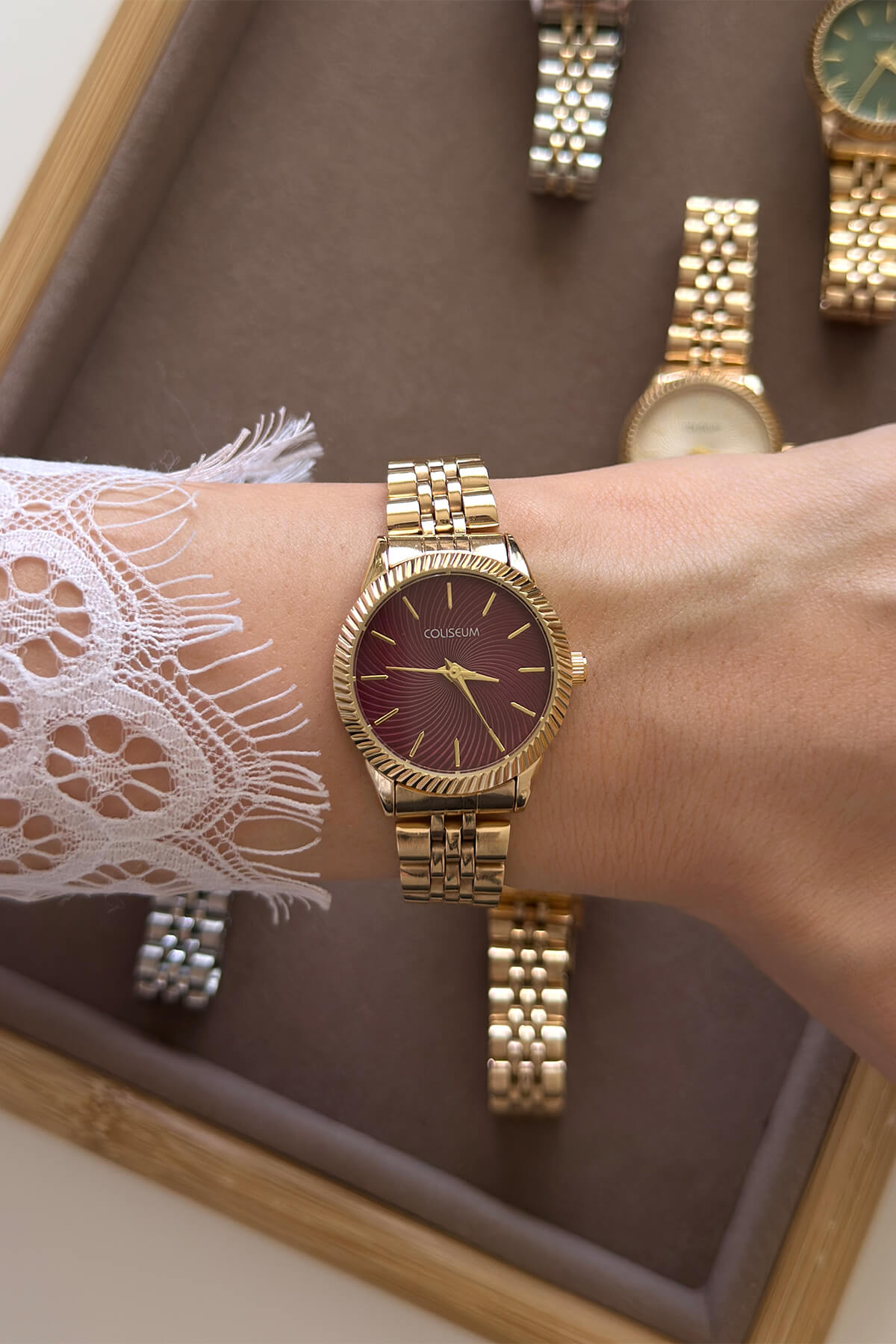 Cappmoda Solen Bordo Kadran Gold Çelik Kordon Kadın Kol Saati