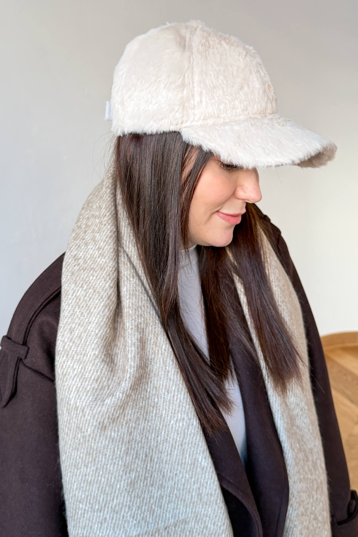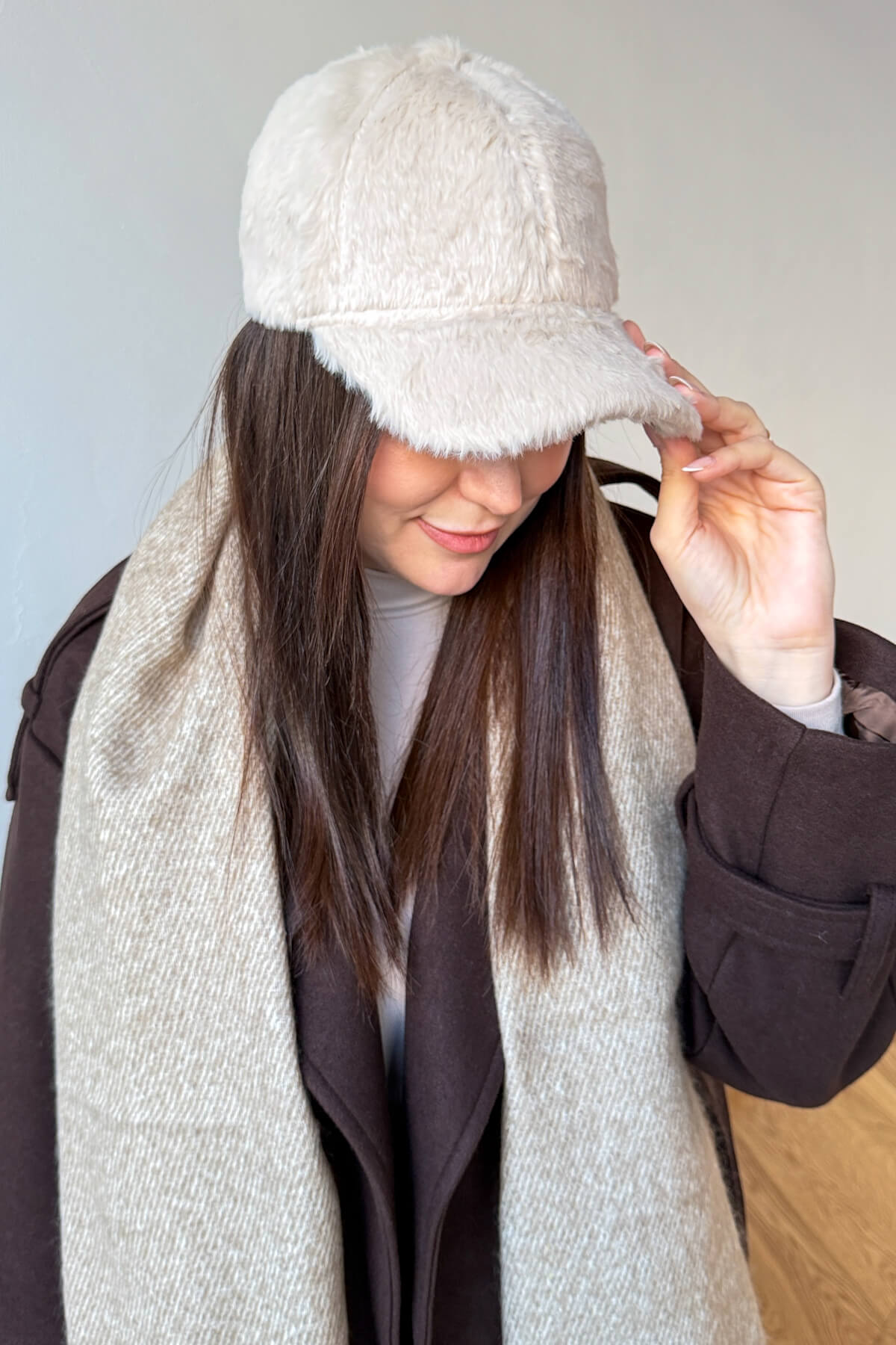 ŞPK-2002 Taş Rengi Kürklü Kumaş Cap Şapka