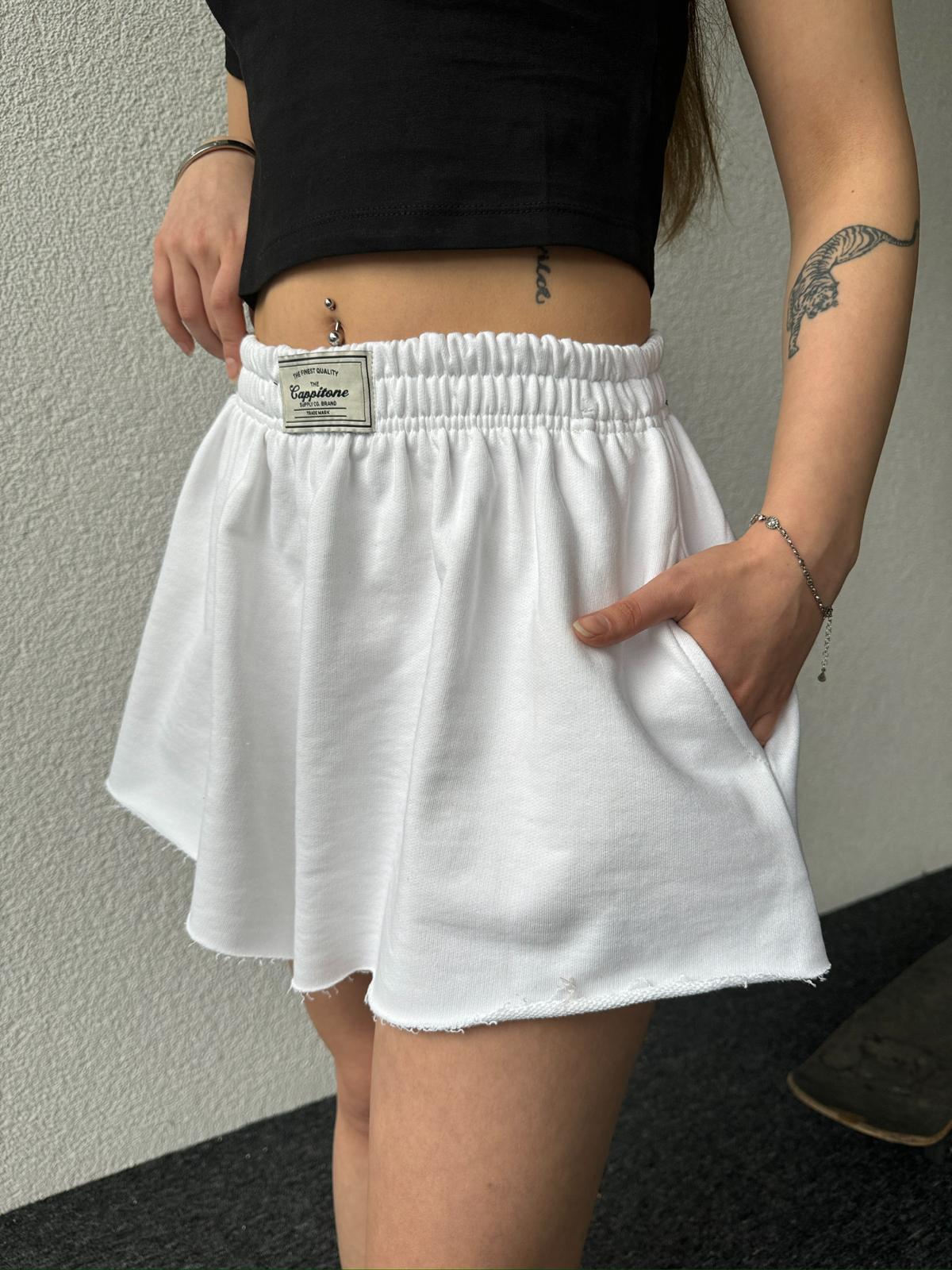 Cappmoda  ŞRT-16024 Beyaz Etiket Detaylı Kısa Salaş Lastikli Şort