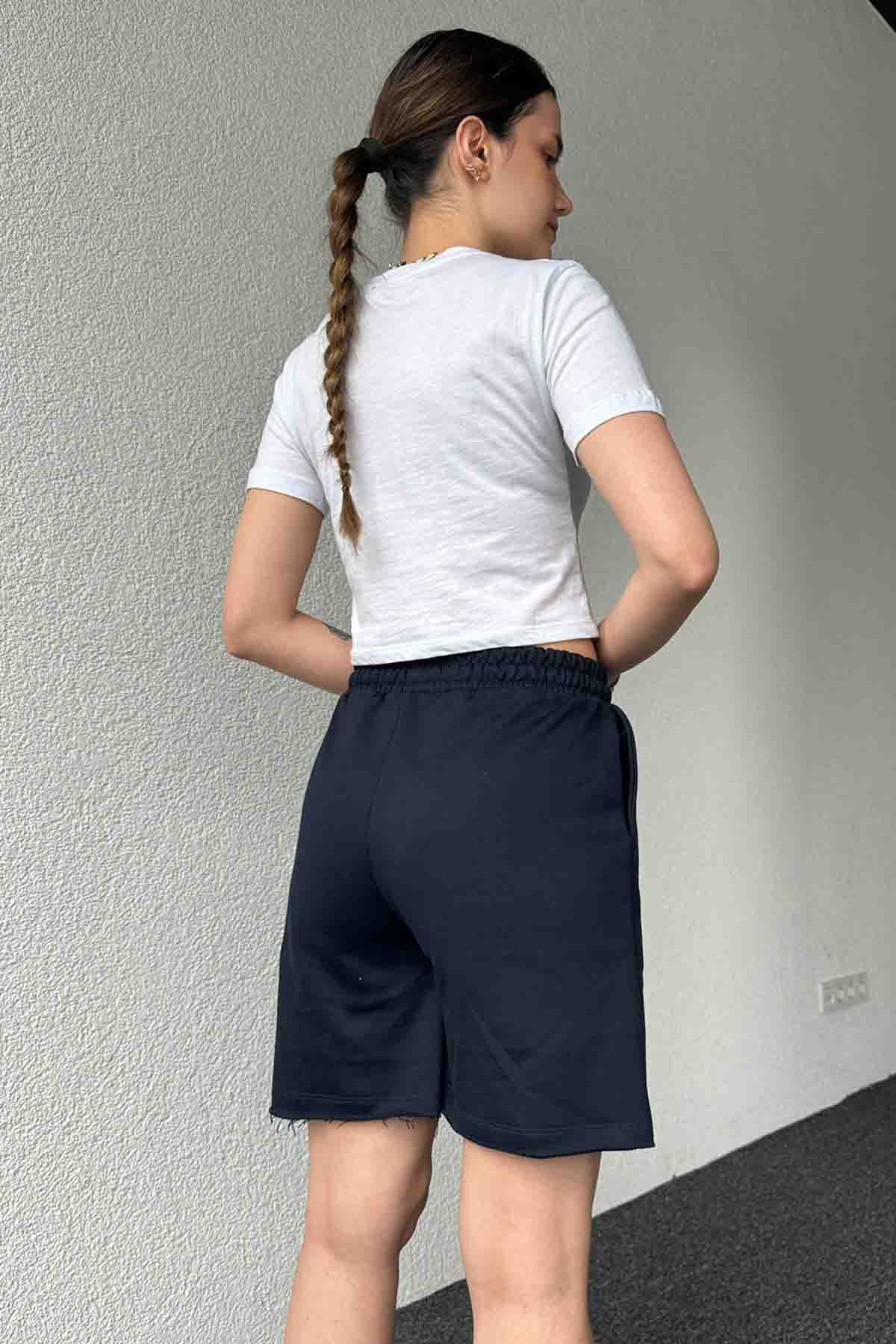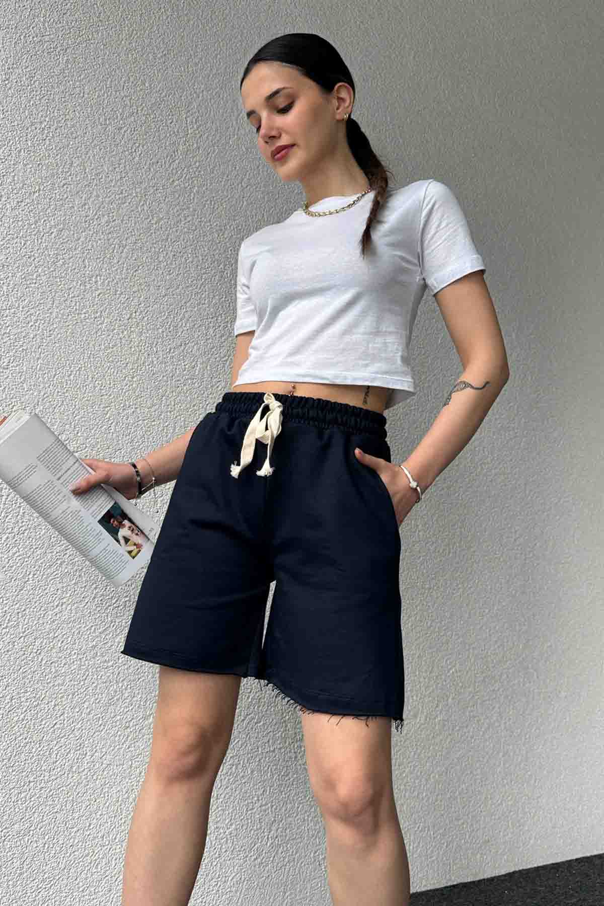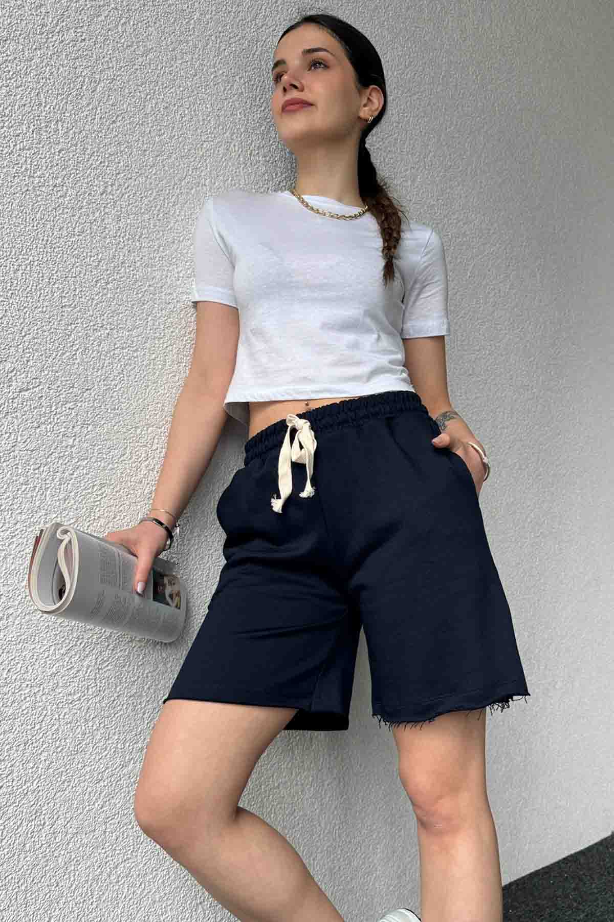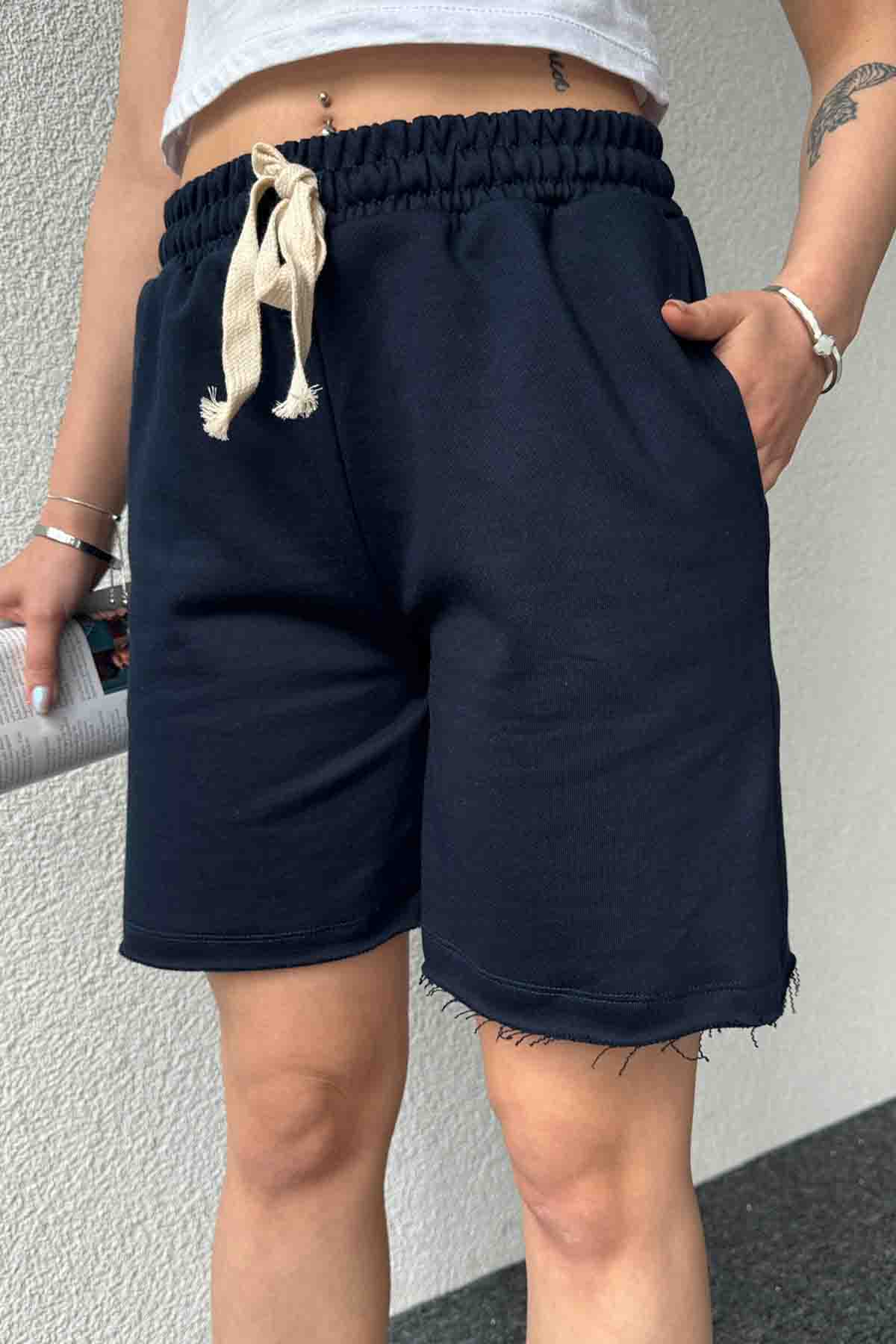 ŞRT-16026 Lacivert Pis Dikişli Kordonlu Uzun Lastikli Şort
