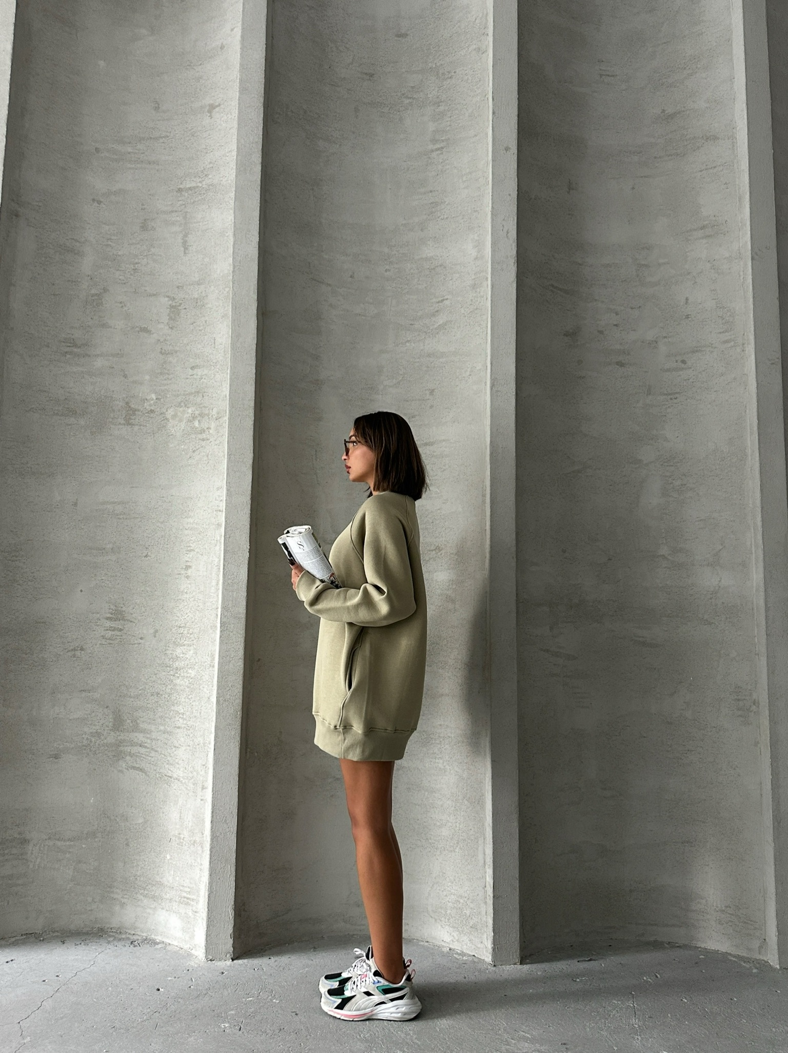 SWT-14271 Haki Cepli Oversize Üç İplik Basic Sweatshirt