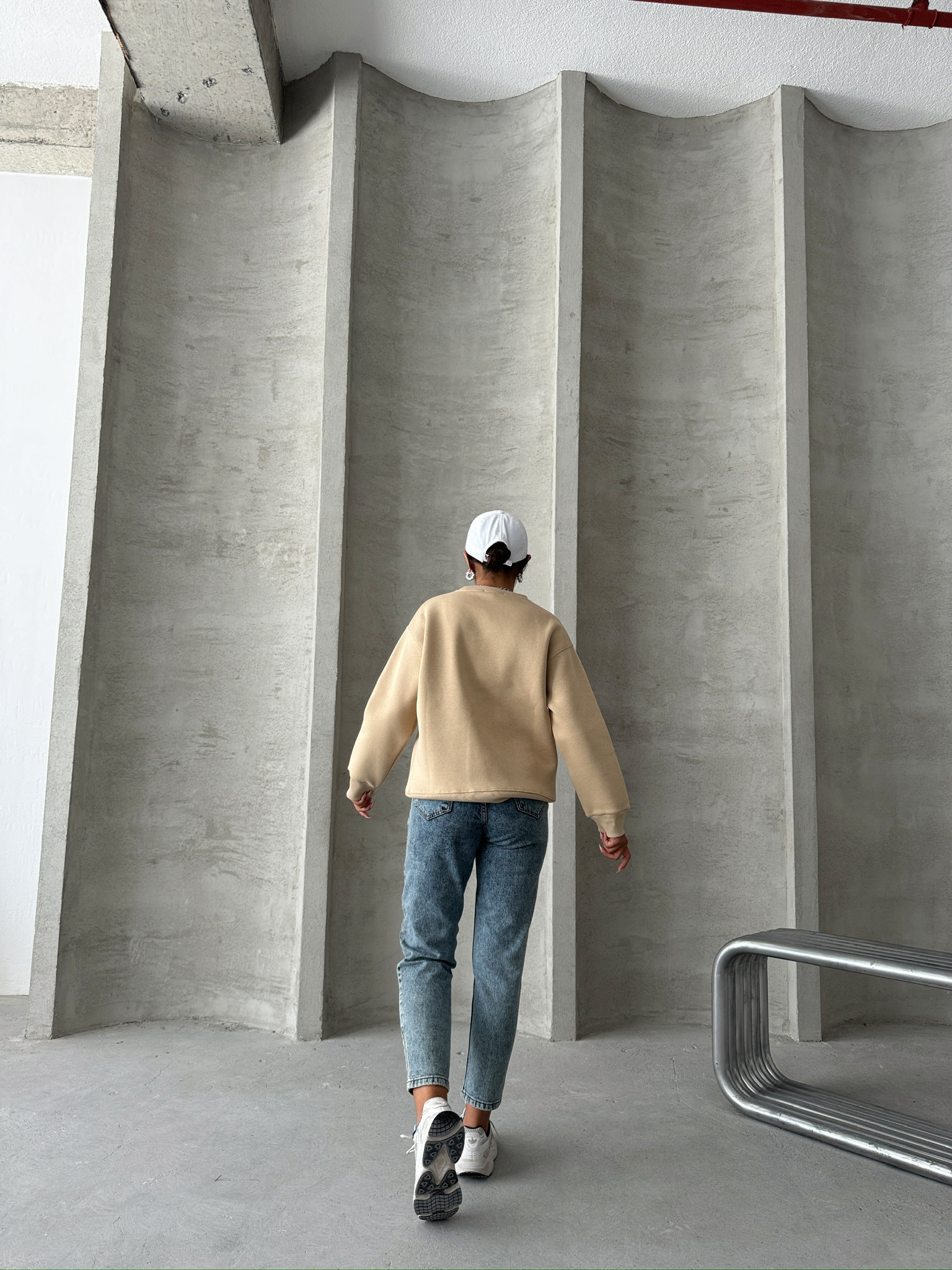 SWT-14283 Vizon Forever Yazı Baskılı Üç İplik Şardonlu Bisiklet Yaka Sweatshirt
