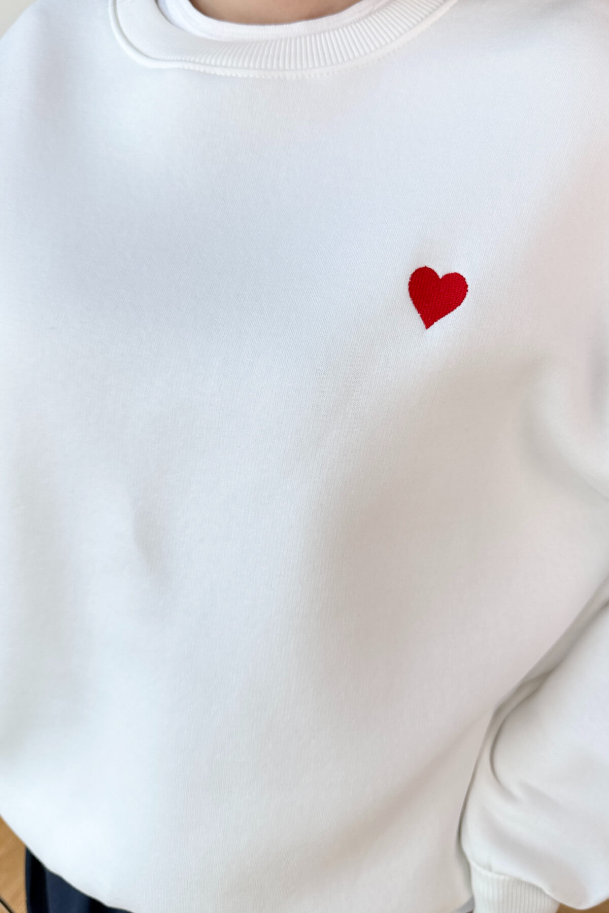 Minimal kalp nakış detayı ile zarif ve özgün görünüm