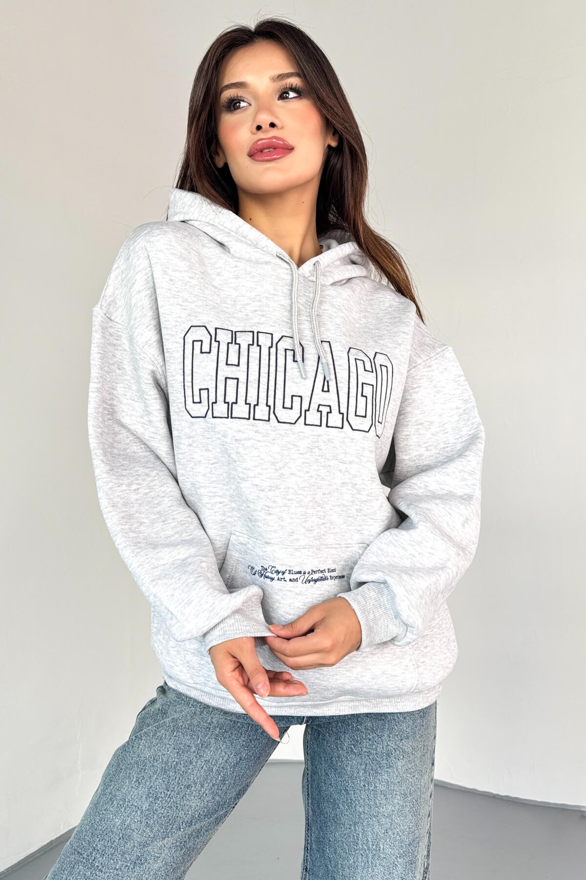 Chicago baskısı ile enerjik ve dinamik bir görünüm.