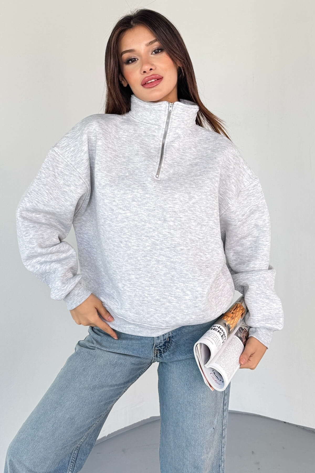Yarım fermuarlı tasarım ile modern ve sportif bir görünüm.
