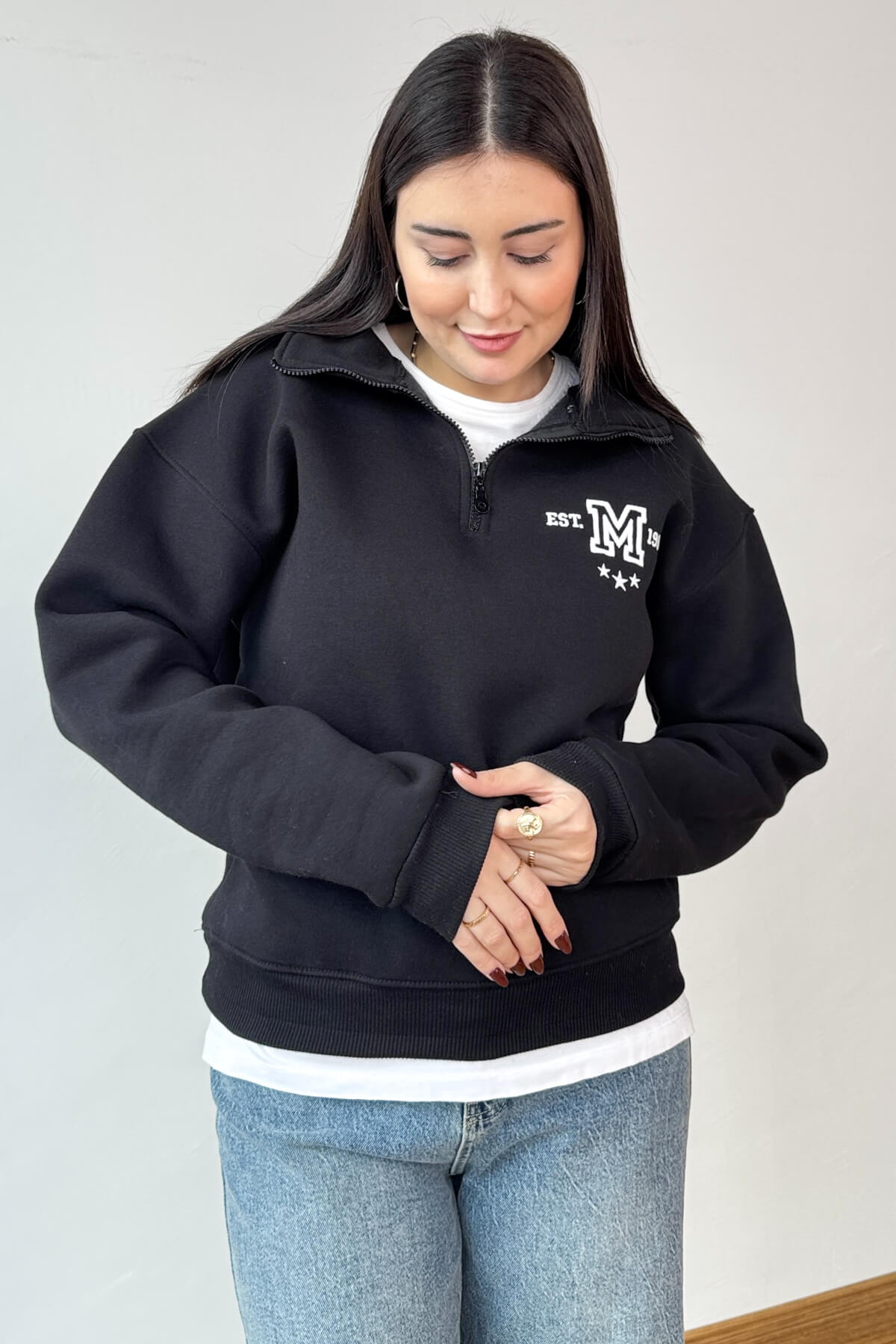 Göğüs kısmında M harfi nakış detayı ile koleje gönderme yapan modern görünüm