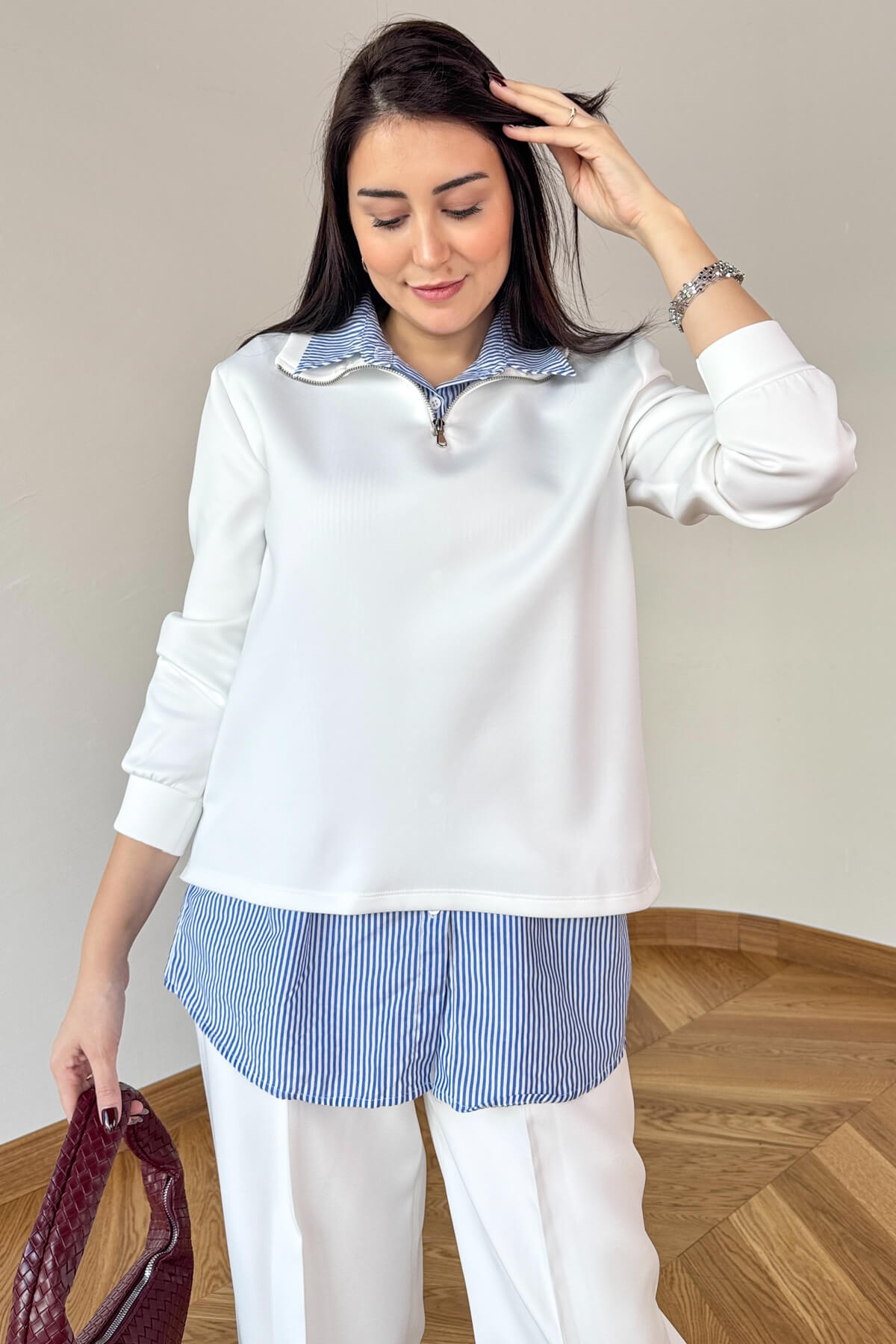 Kendinden gömlek detaylı tasarımıyla şık ve modern görünüm