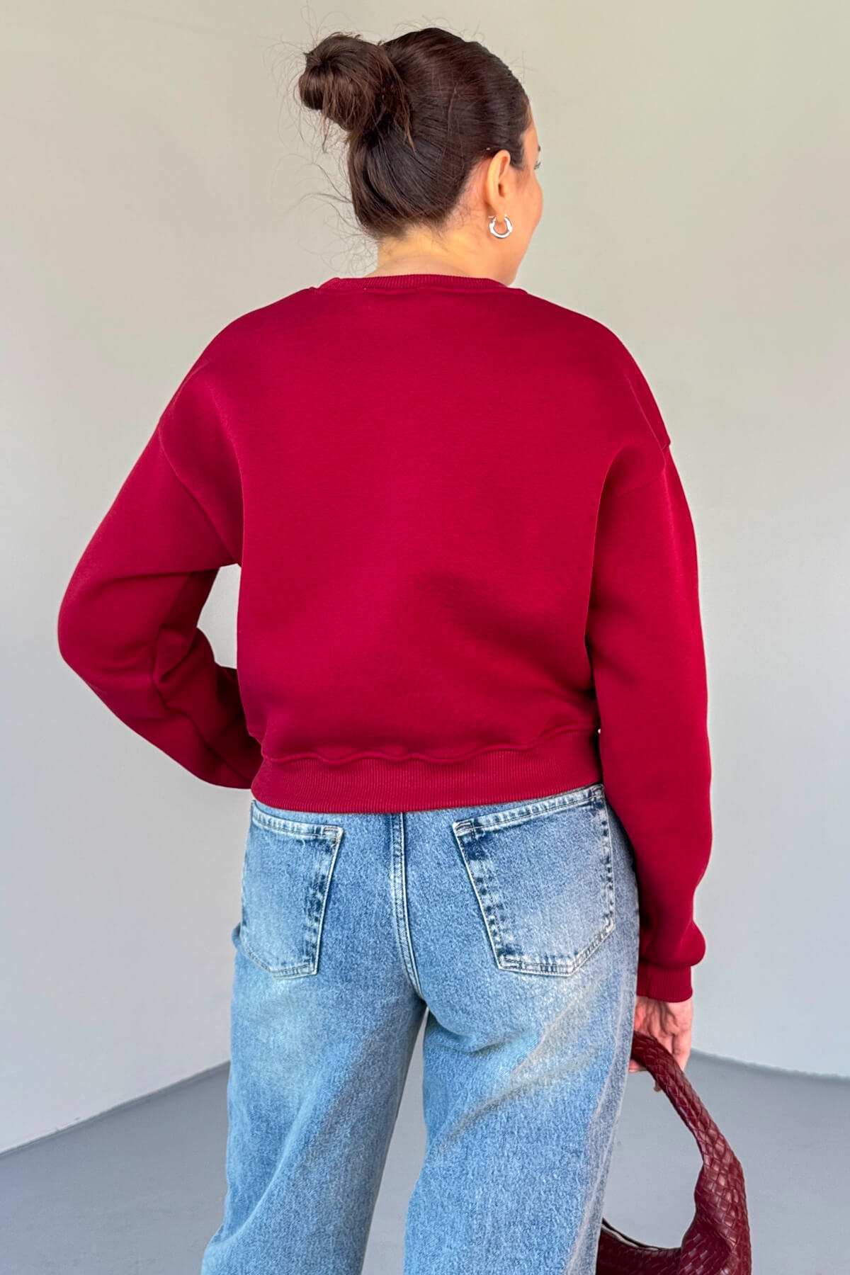 SWT-226 Bordo Basic Bisiklet Yaka Sweatshirt
