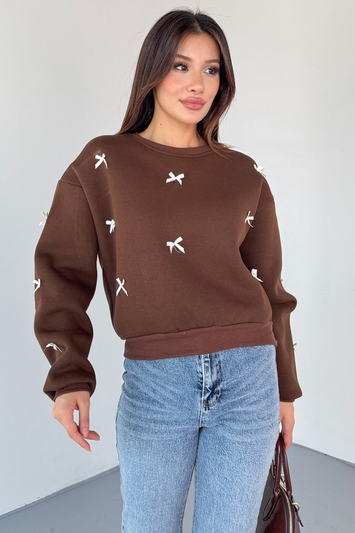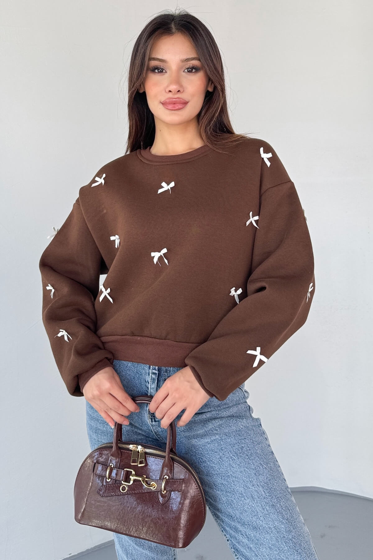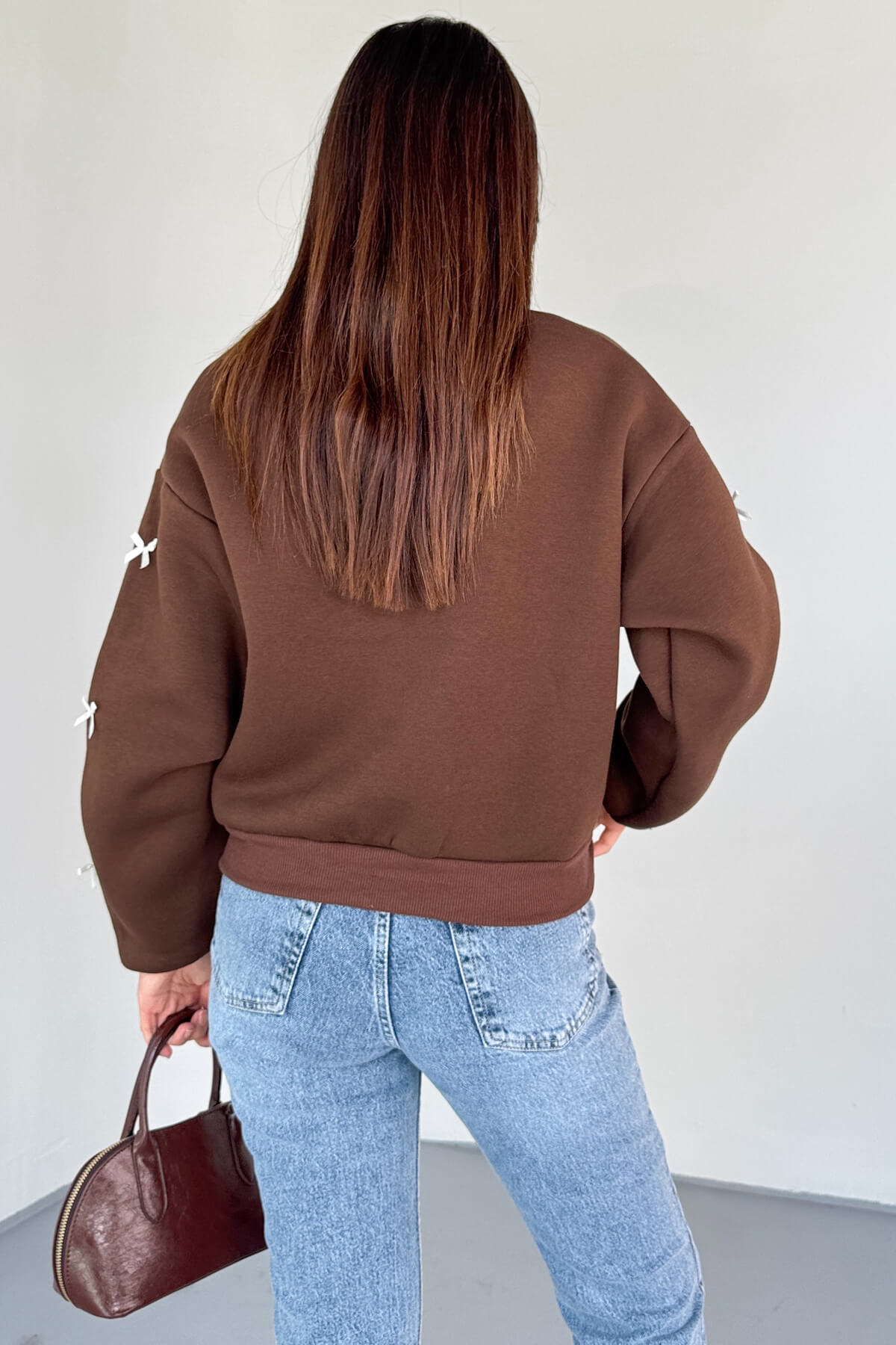 Göğüs ve kollar üzerinde minik fiyonk detayları ile feminen şıklık