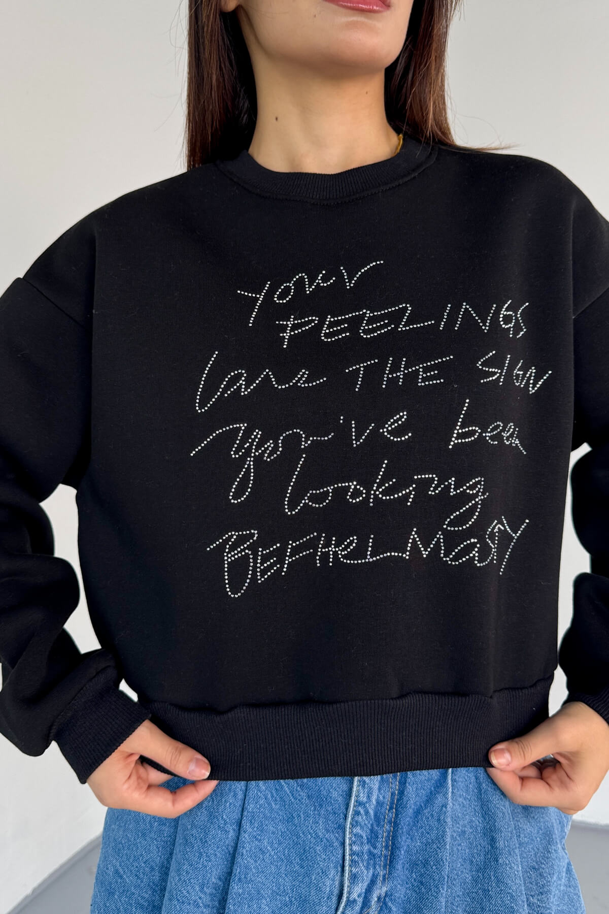 Yuvarlak yaka ve uzun kol tasarım ile klasik sweatshirt formu.