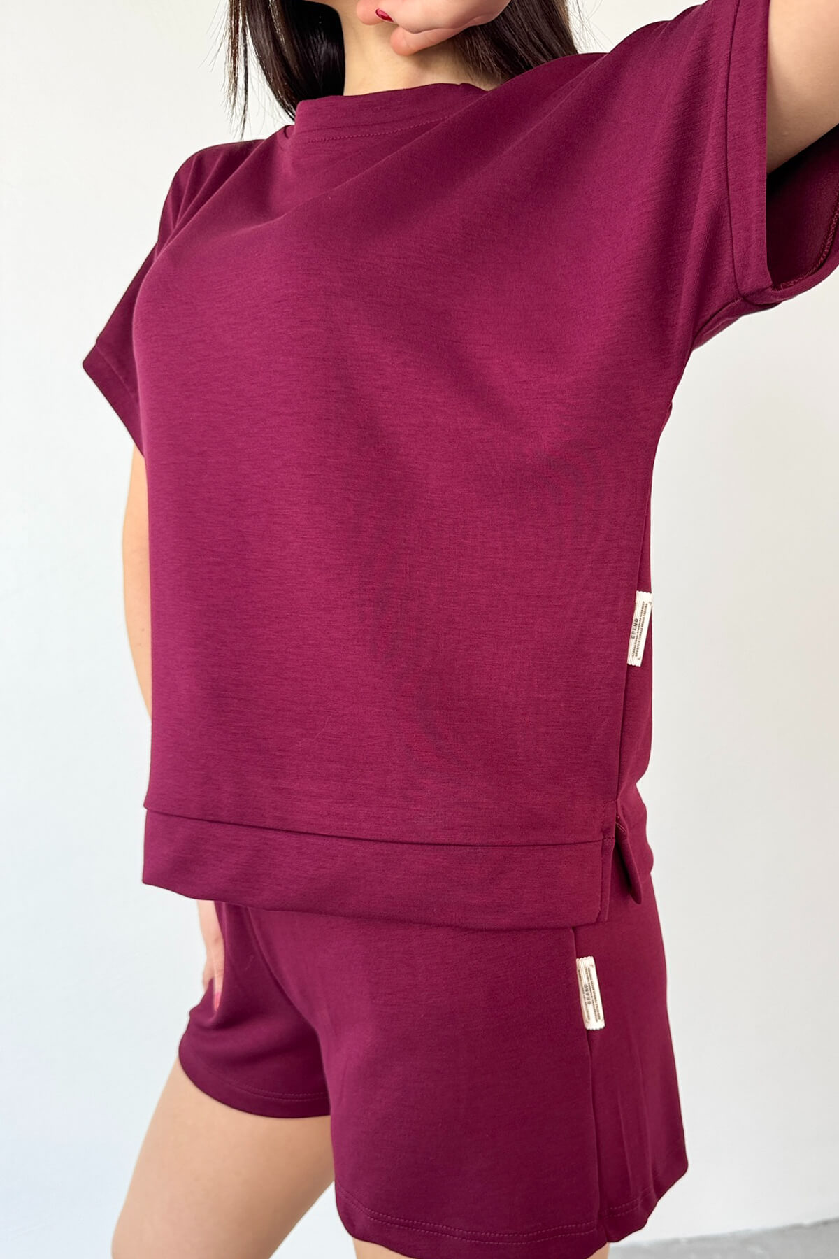 Tişört bisiklet yaka T kol modeldir. Şort ip bağlamalı, rahat giyime sahiptir.