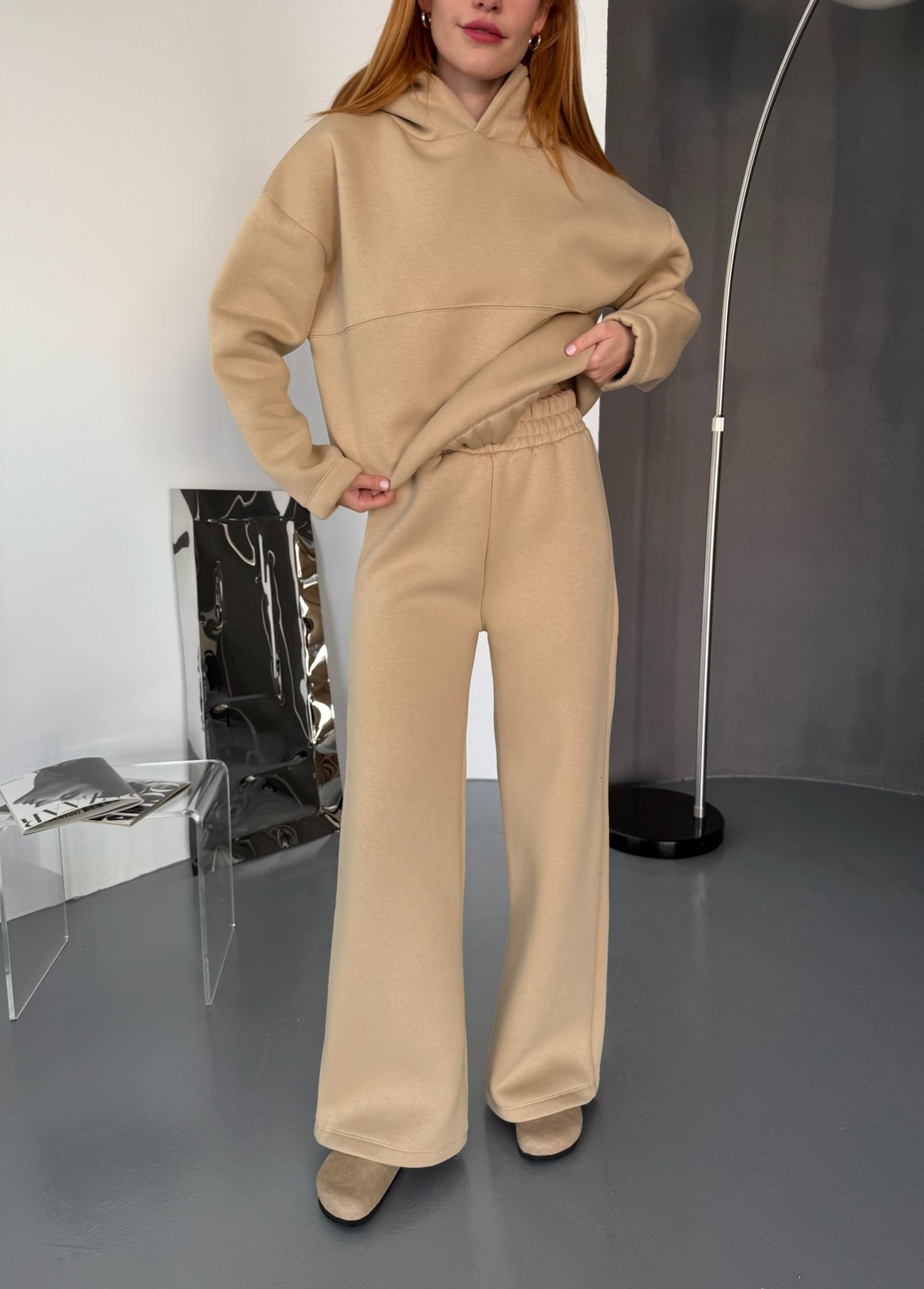 TKM-0037 Vizon Dikiş Detaylı Kapüşonlu Sweatshirt & Eşofman Üç İplik Şardonlu İkili Takım