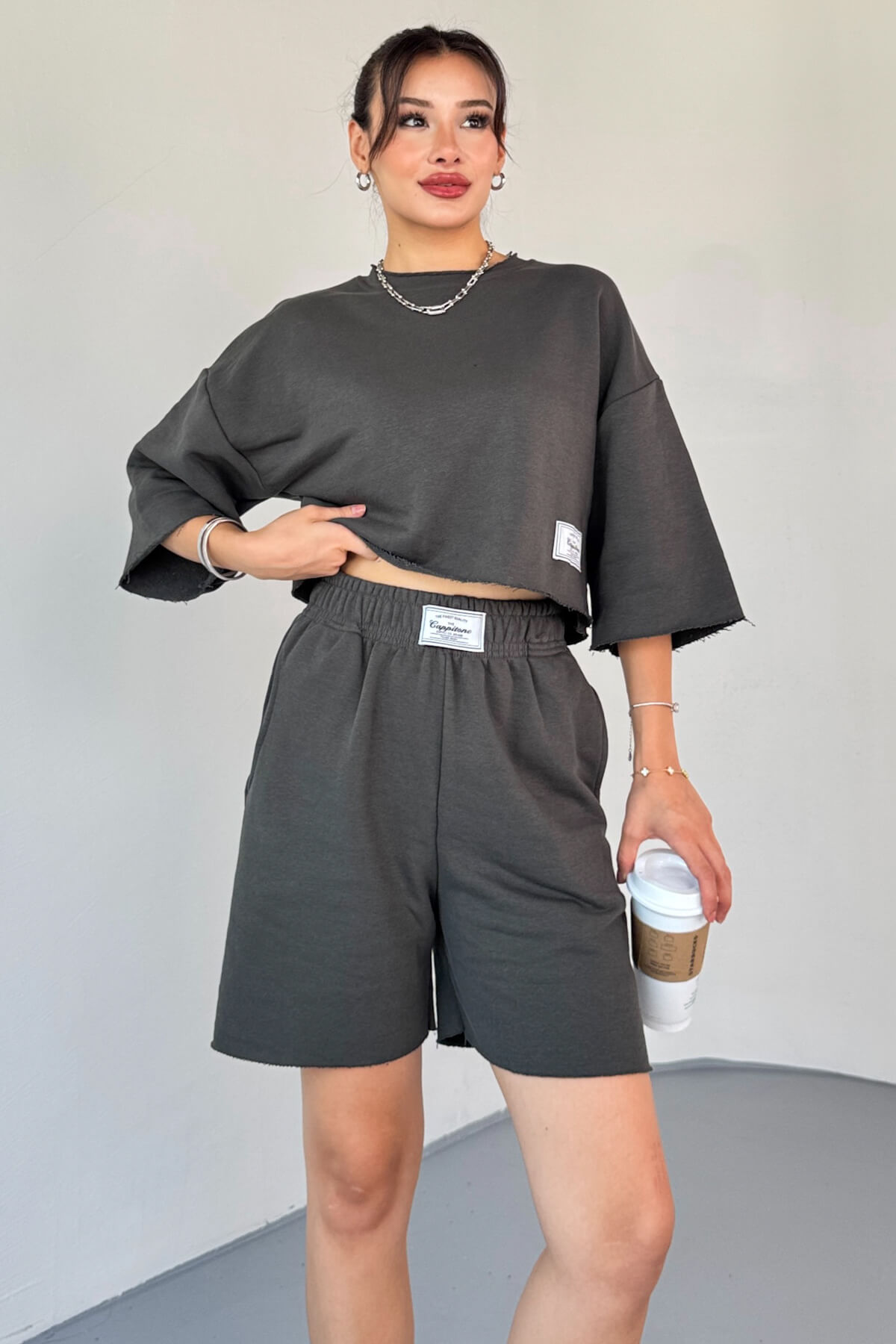 Oversize crop üst: Kol ve etek ucu kesik detaylı, modern duruş