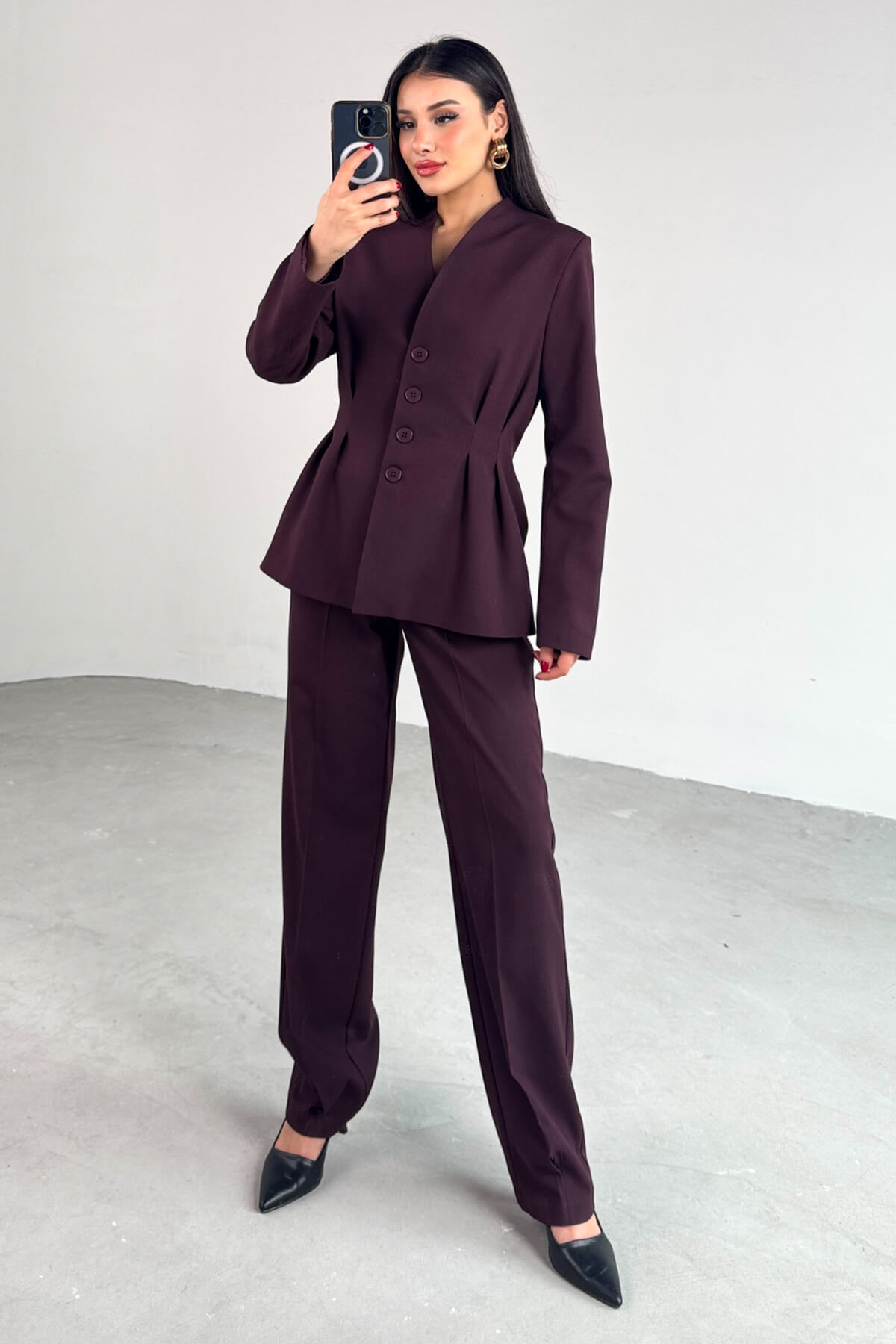 TKM-03708 Mürdüm Pensli Düğmeli Ceket Pantolon Casual Takım