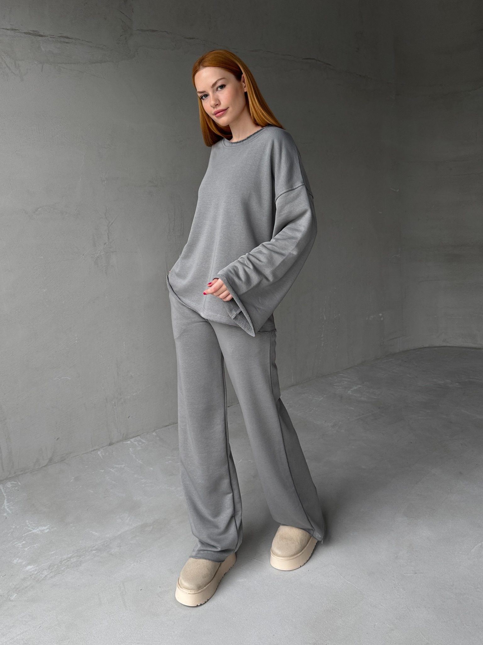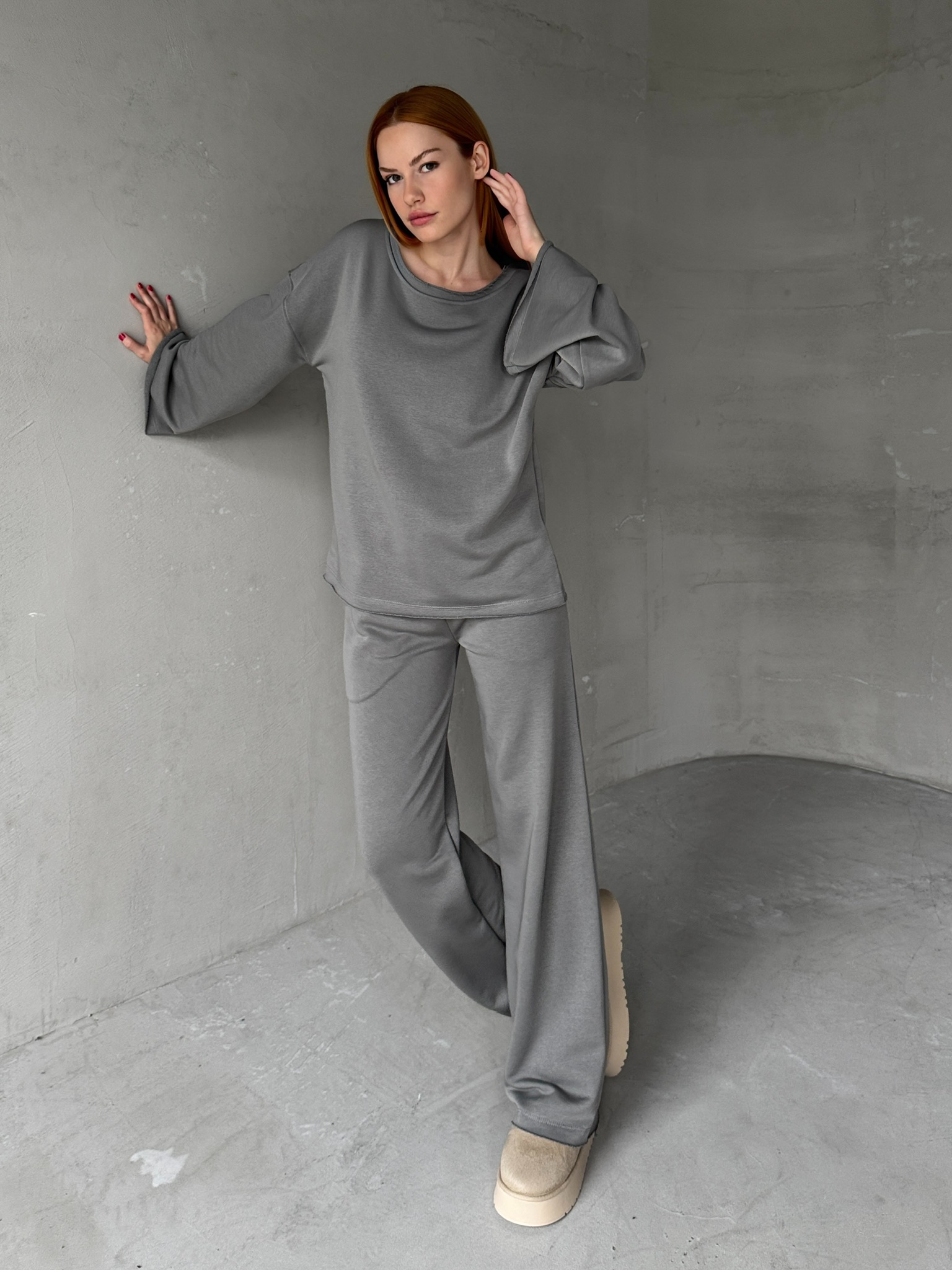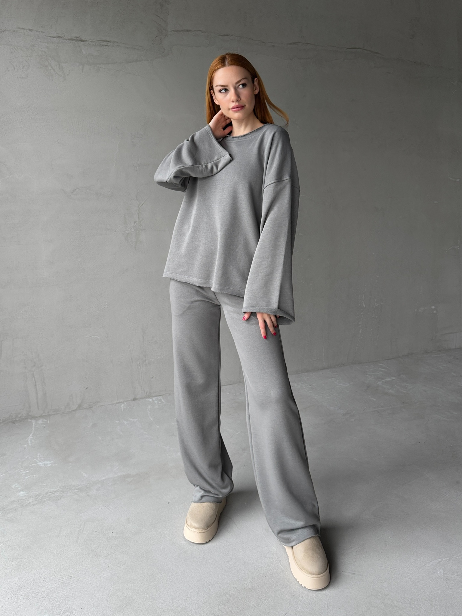 TKM-1201 Füme Pis Dikişli Salaş Model Bluz Palazzo Pantolon İki İplik Mevsimlik İkili Takım