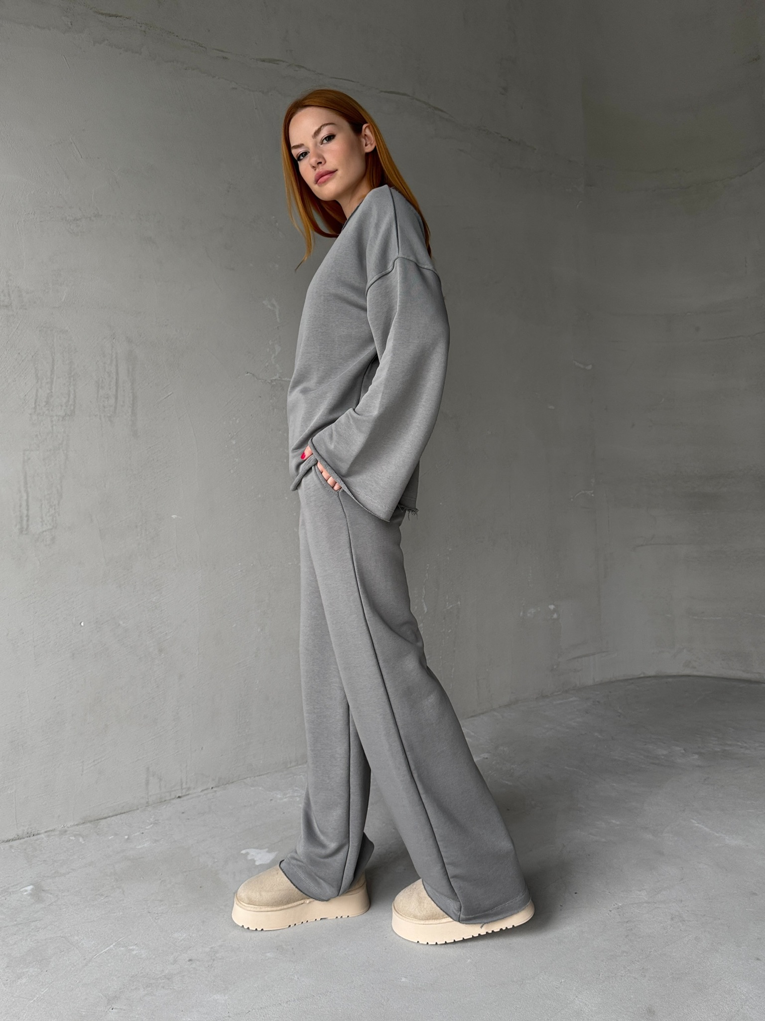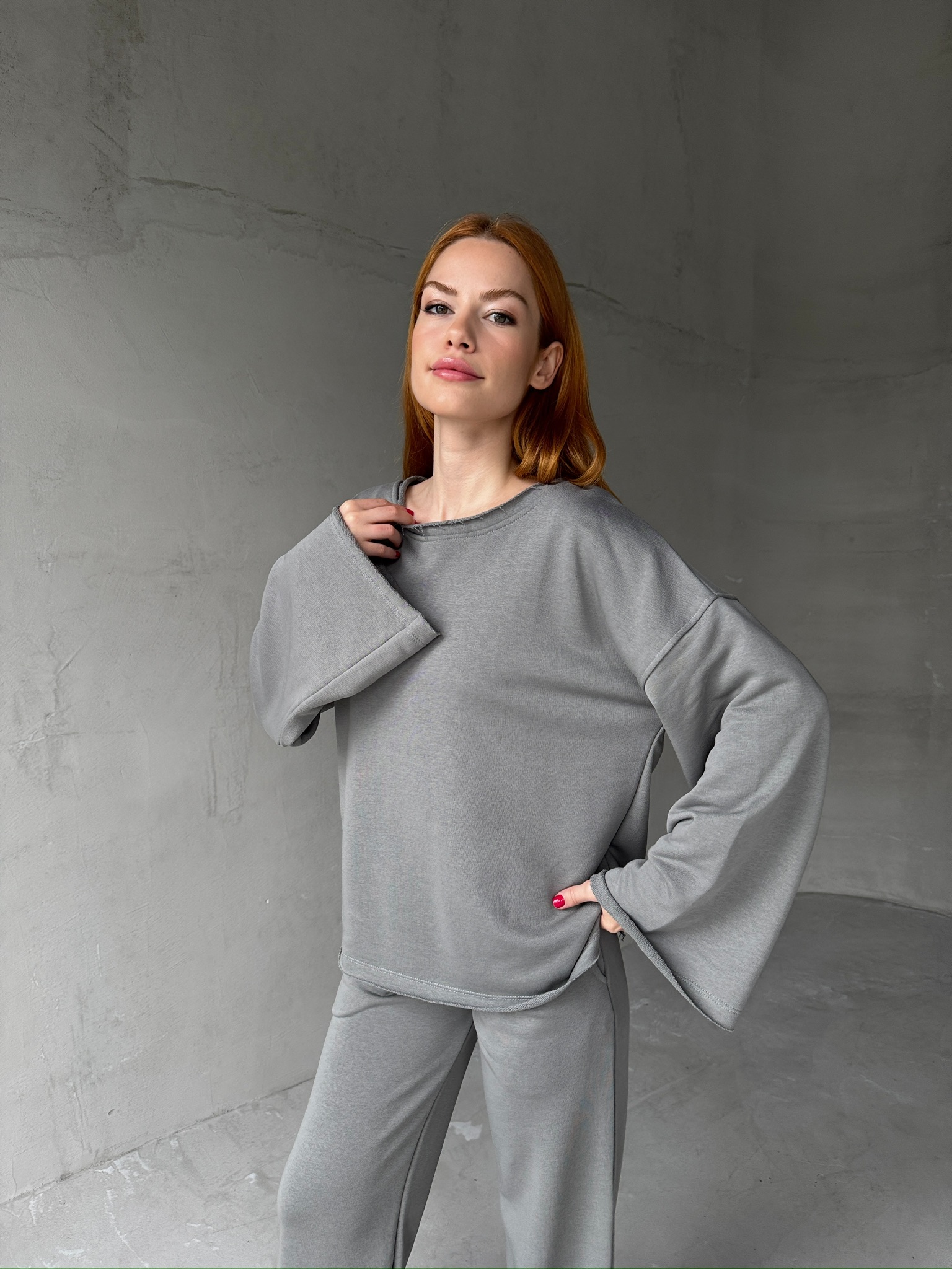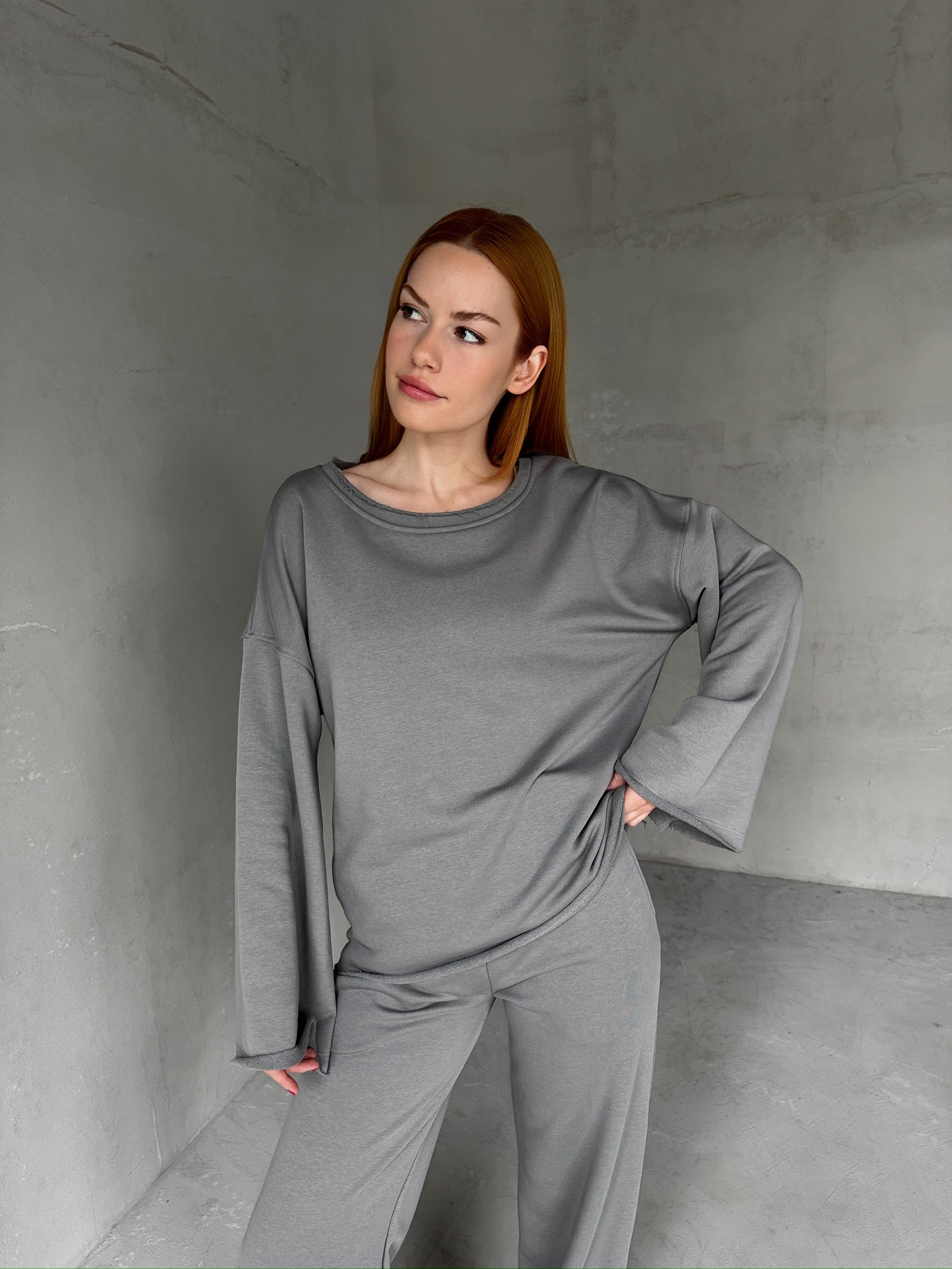 TKM-1201 Füme Pis Dikişli Salaş Model Bluz Palazzo Pantolon İki İplik Mevsimlik İkili Takım