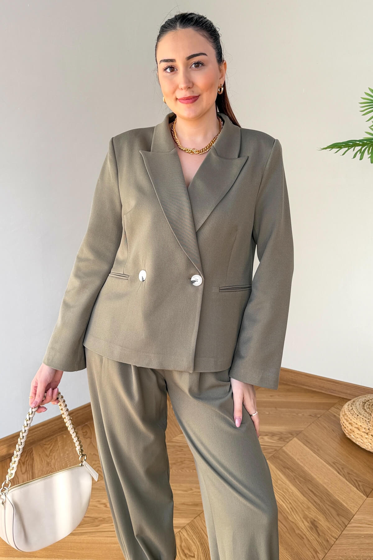 Kombin Önerisi: Takımı şık bir stiletto ve minimal gold takılarla geceye taşıyabilir veya loafer ayakkabılarla modern bir ofis stili yaratabilirsiniz.